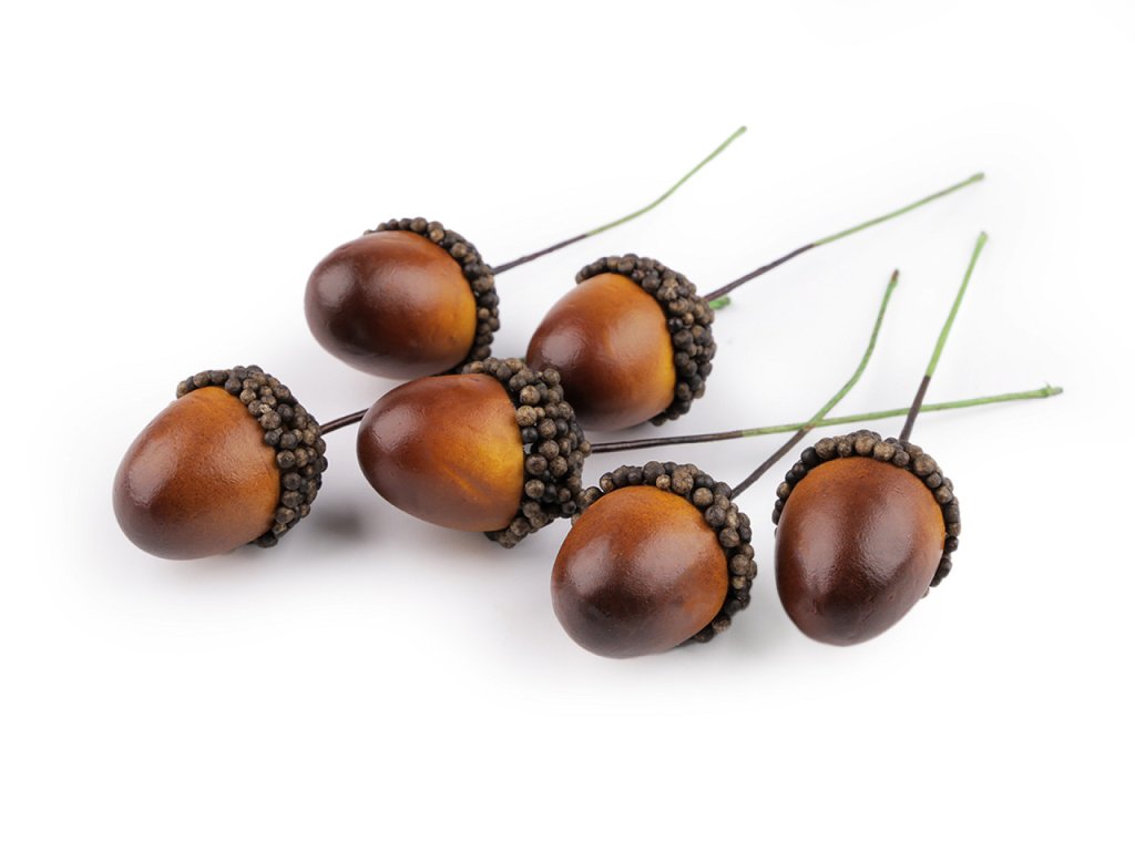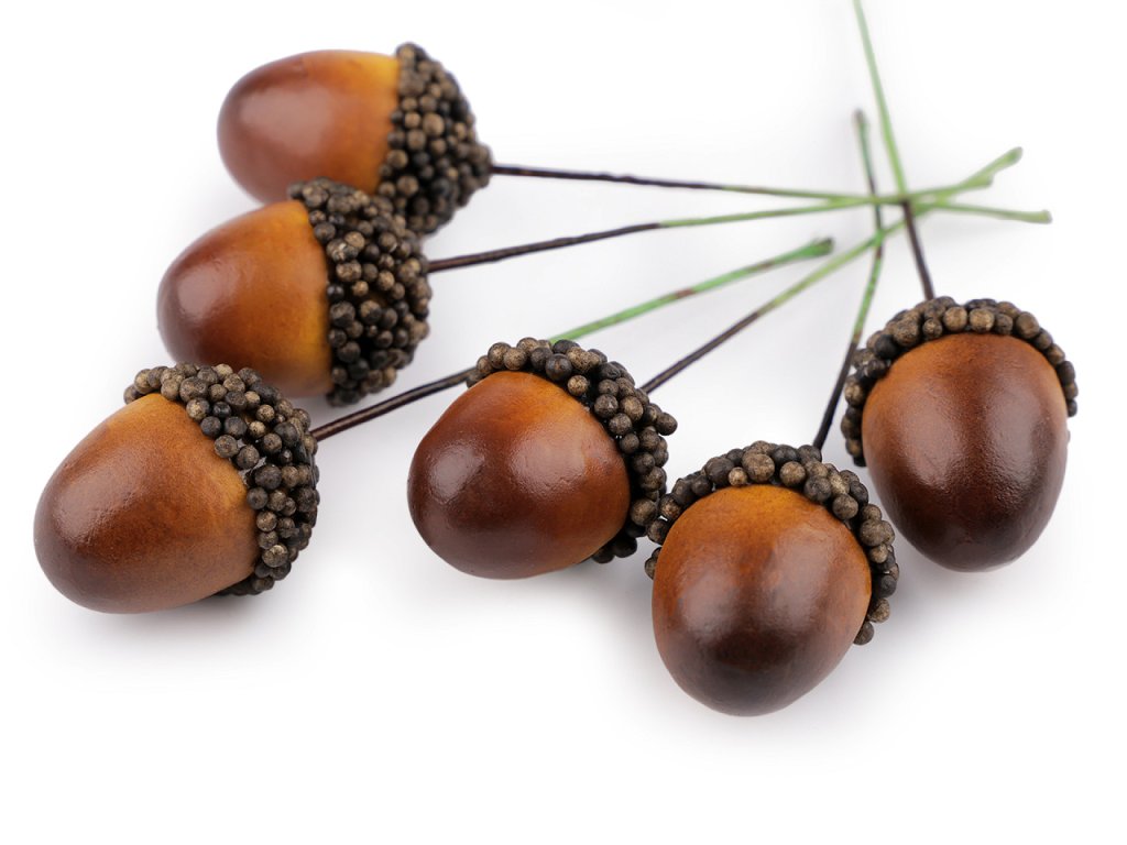 Dekorační umělý žalud je připevněný na drátě, takže ho můžete libovolně tvarovat. Plody žaludu vyniknou v podzimních vazbách, věncích, truhlících apod.- Délka: cca 9,5 cm