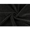 Třpytivý úplet je protkaný luxerem, který mu dodává slavnostní vzhled. Je splývavý, lehký, z rubové strany hladký a pruží všemi směry. Neprosvítá. Úplet je vhodný na šití společenských šatů, sukní, bolerek, kardiganů, halenek i širokých elegantních kalhot. Lurex je černý.- Gramáž: 170 g/m²