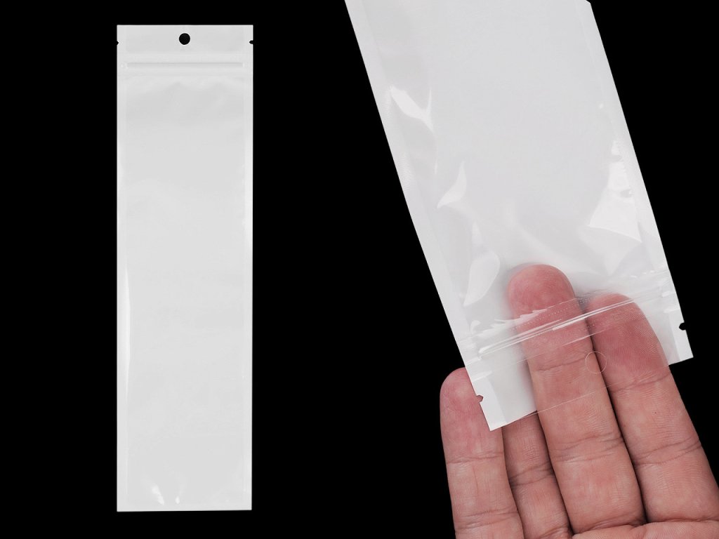 Sáčky s rychlouzavírací zipovou lištou jsou vhodné k balení zboží v obchodě. Přední strana sáčků je průhledná, což umožňuje snadno zkontrolovat jeho obsah. Své produkty můžete zákazníkům ukázat, aniž byste sáčky museli rozbalovat. Samouzavírací zipovou lištu můžete opakovaně otevírat a zavírat. V horní části sáčků je závěs k zavěšení na prodejní stojan. Vnitřní prostor sáčků je 5,8 x 21,5 cm.- Rozměry: 7 x 25 cm