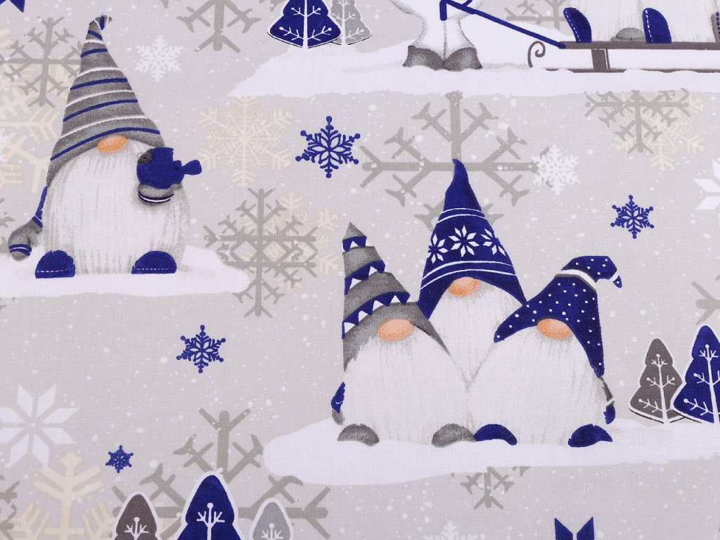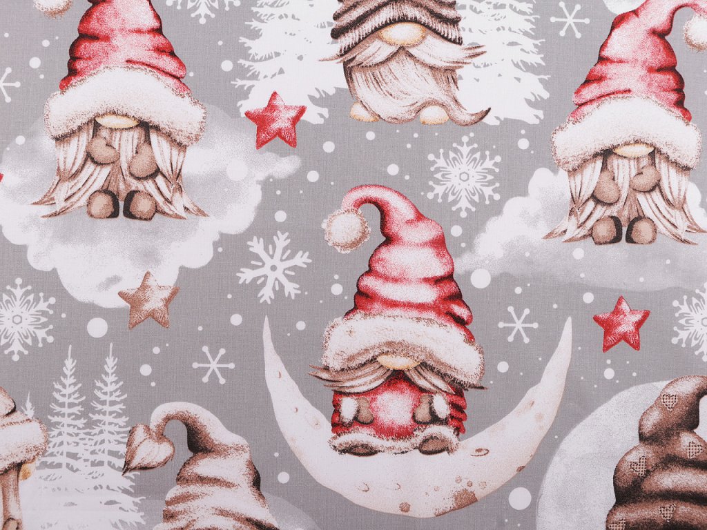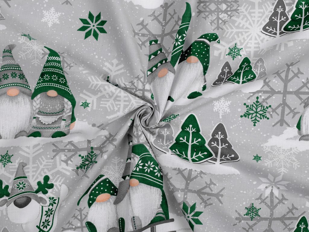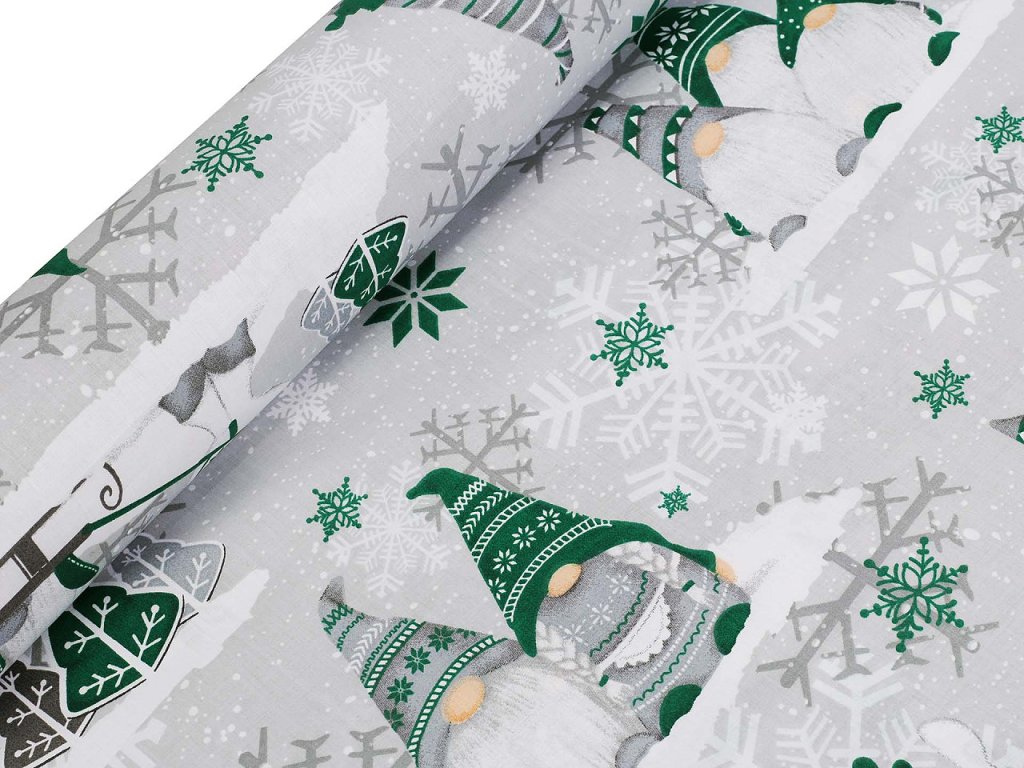 Bavlněnou látku s designem vánočních skřítků využijete na šití polštářů, povlečení, mantinelů do postýlek, hnízd pro děti, pytlíků, ubrusů, běhounů a prostírání.