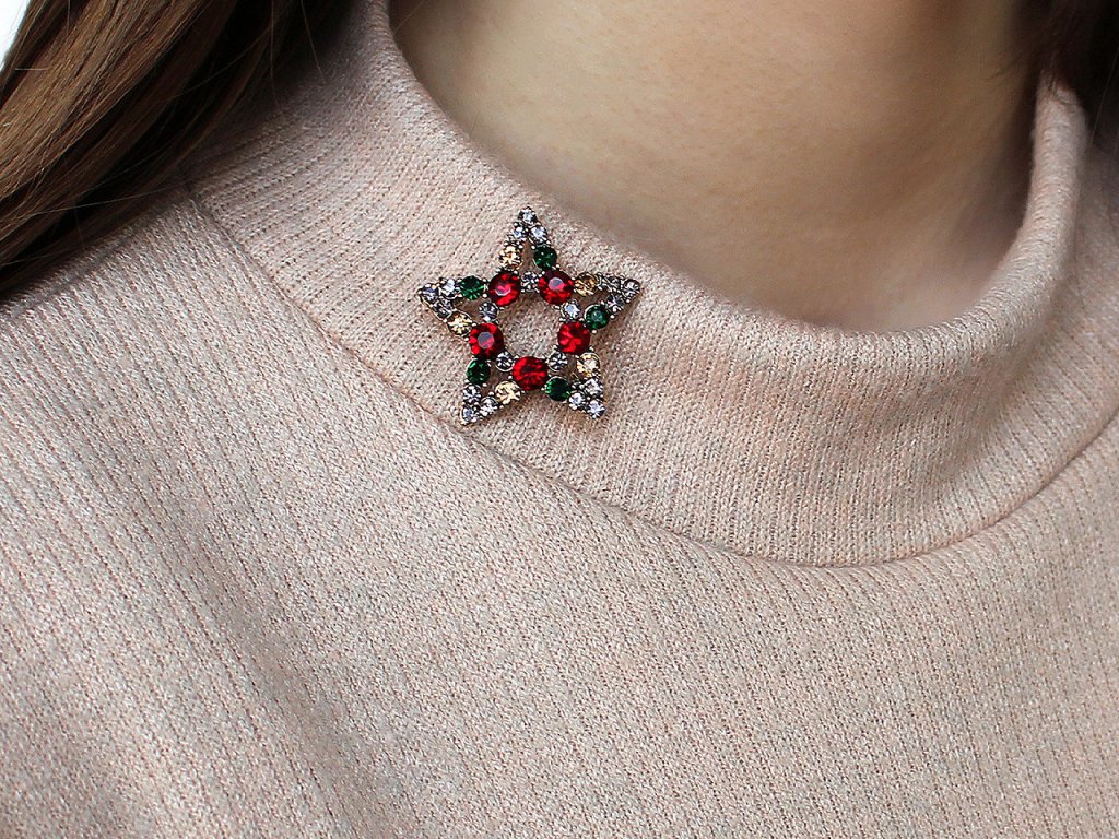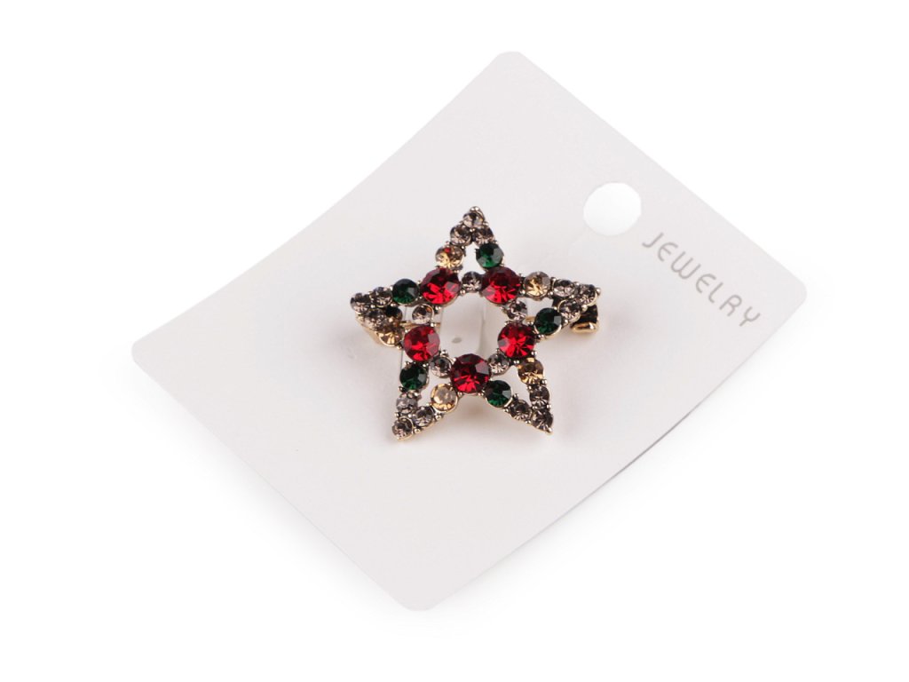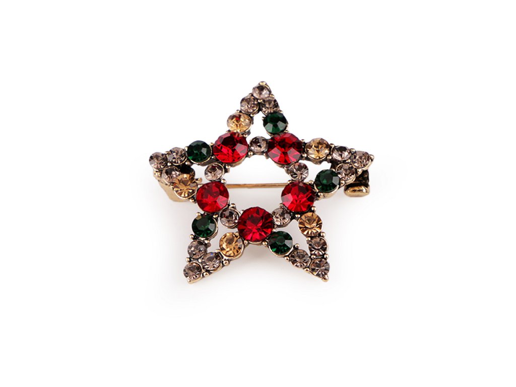 Elegantní brož hvězdy bude poutavým doplňkem vašeho oděvu, je skvělým doplňkem pro každou slavnostní příležitost. Díky třpytivým broušeným kamínkům skvěle dozdobí košile, saka, svetry, kabelky či čepice. Brož bude také krásným dárkem, který potěší každého milovníka módy a vánoční estetiky. Brož má vzadu brožový špendlík. Je na plastové kartě, která se dá zavěsit na prodejní stojany.- Průměr: 3,3 cm