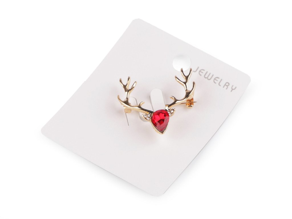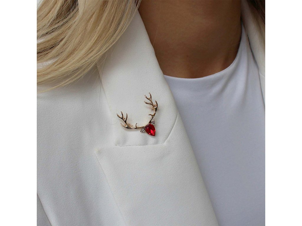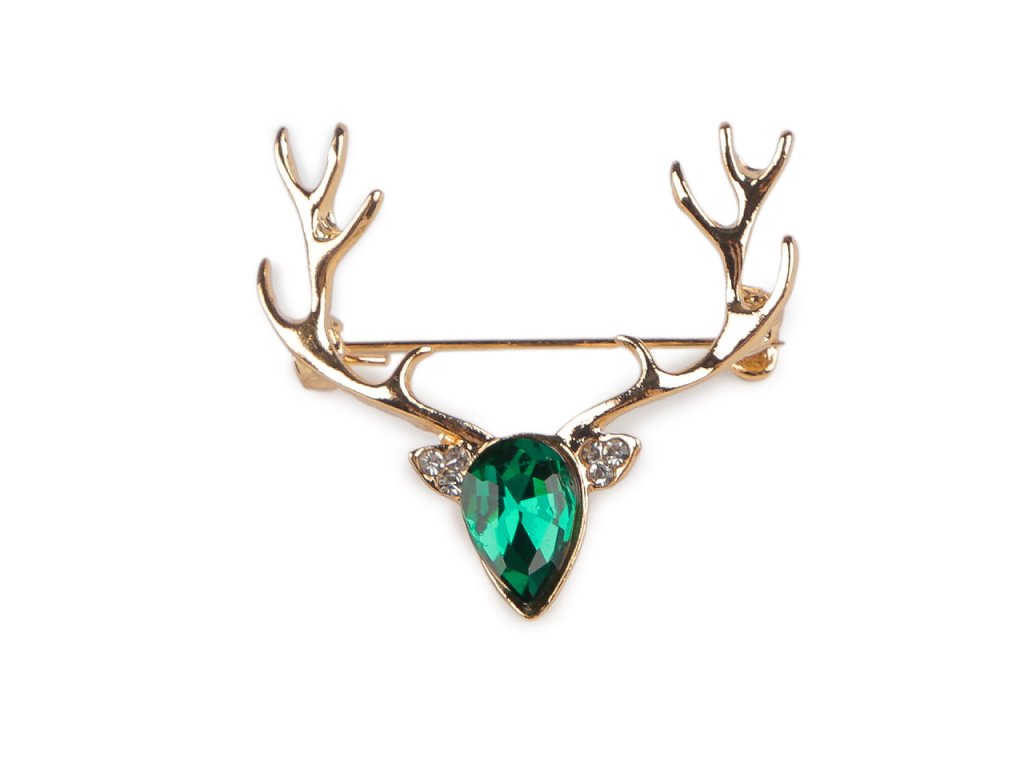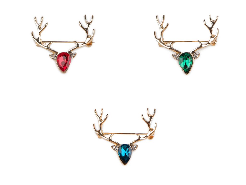 Brož s jelení hlavou s broušeným kamenem je velice elegantní, nádherně se leskne. Je stylovým doplňkem, který přinese vánoční náladu do jakéhokoliv outfitu. Bude vypadat skvěle na kabátě, klopě saka, svetru, šatech i halence. Dá se připnout i na čepici či kabelku, využijete ji i na ozdobné sepnutí šály a šátku. Brož má vzadu brožový špendlík. Je na plastové kartě, která se dá zavěsit na prodejní stojany.- Rozměry: 3 x 3,3 cm