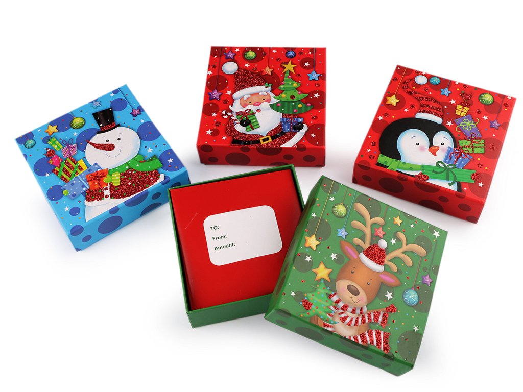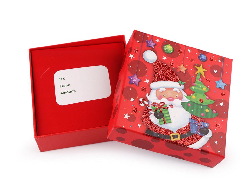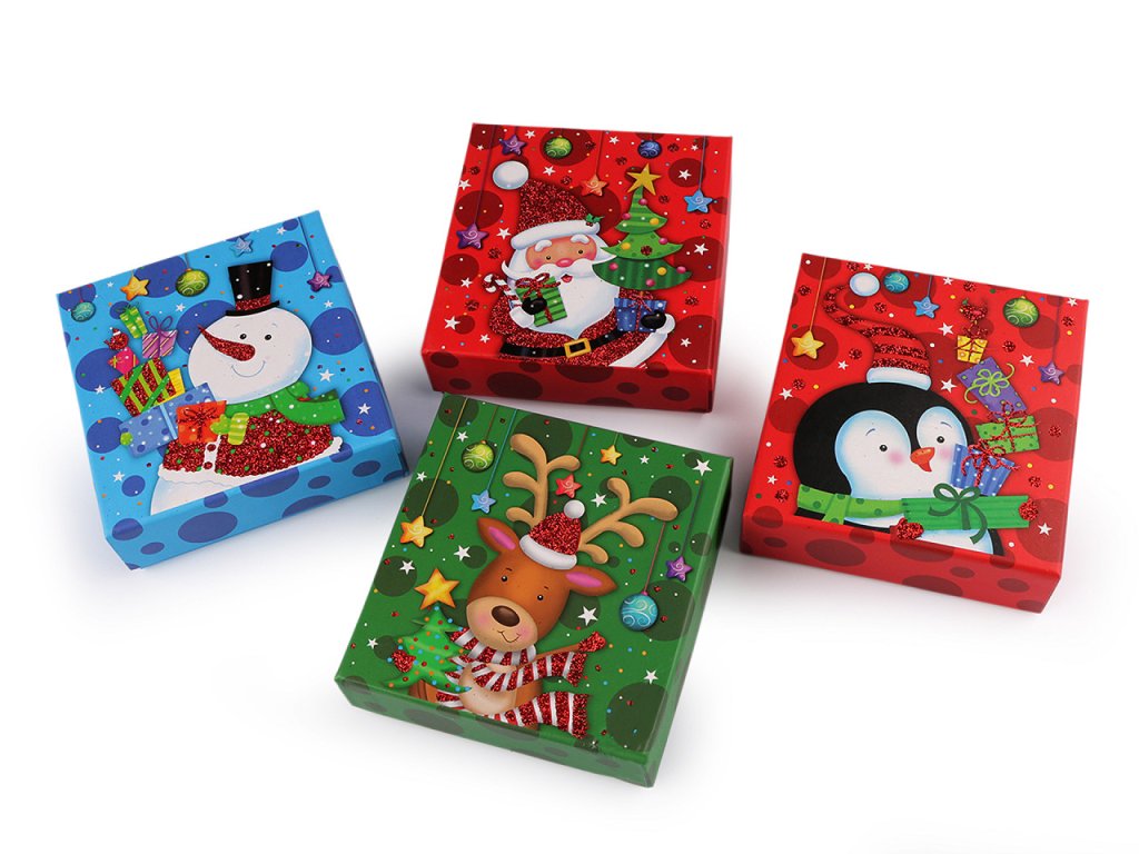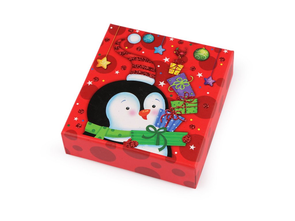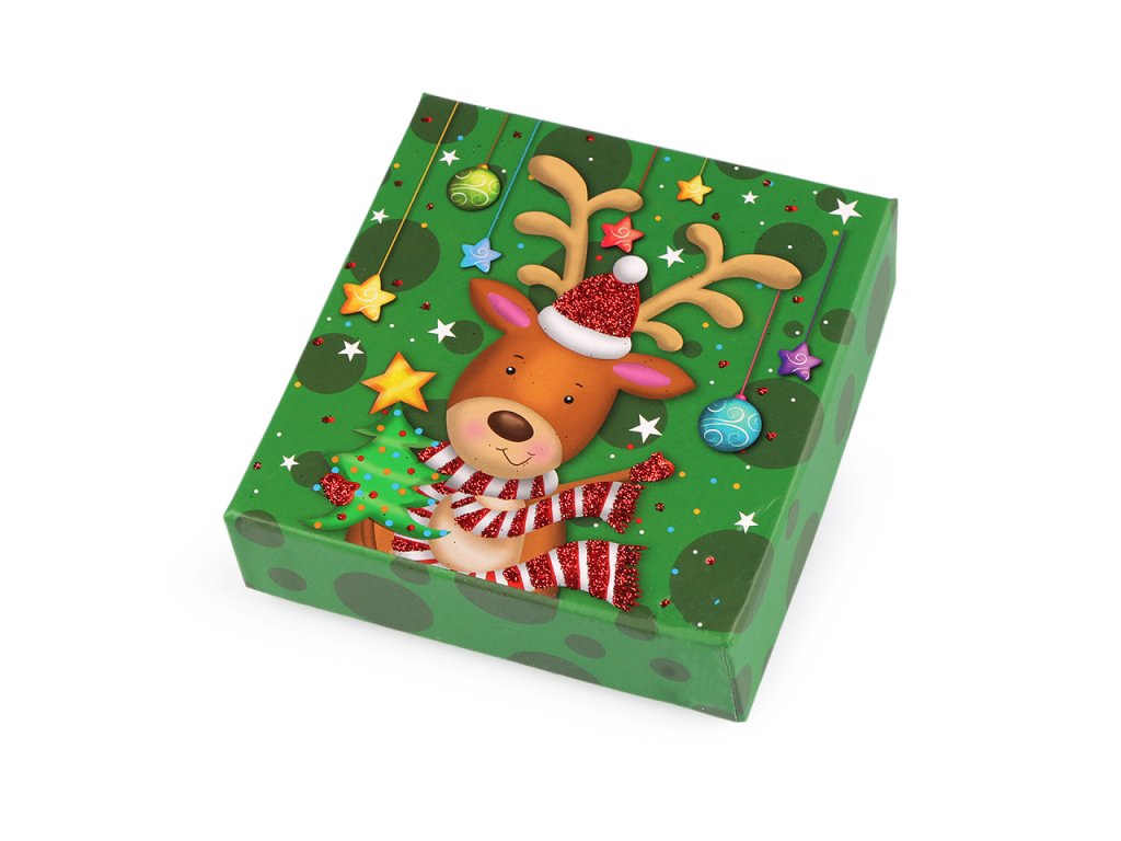 Vánoční krabička se skvěle hodí na zabalení mikulášského i vánočního dárku. Je klasická, otevírací s víkem, je velice kvalitní, vyniká svou pevností. Víko zdobí potisk s glitrovými detaily. Uvnitř má papírovou kartičku, na kterou můžete napsat věnování. Dva šikmo umístěné výřezy můžete využít na lepší připevnění vloženého předmětu. Krabička nemá atest na potraviny. Pochoutky a jiné laskominy doporučujeme vložit zabalené v sáčku.- Rozměry: 11,5 x 12 cm