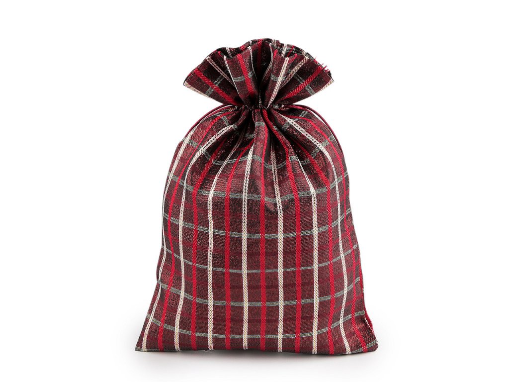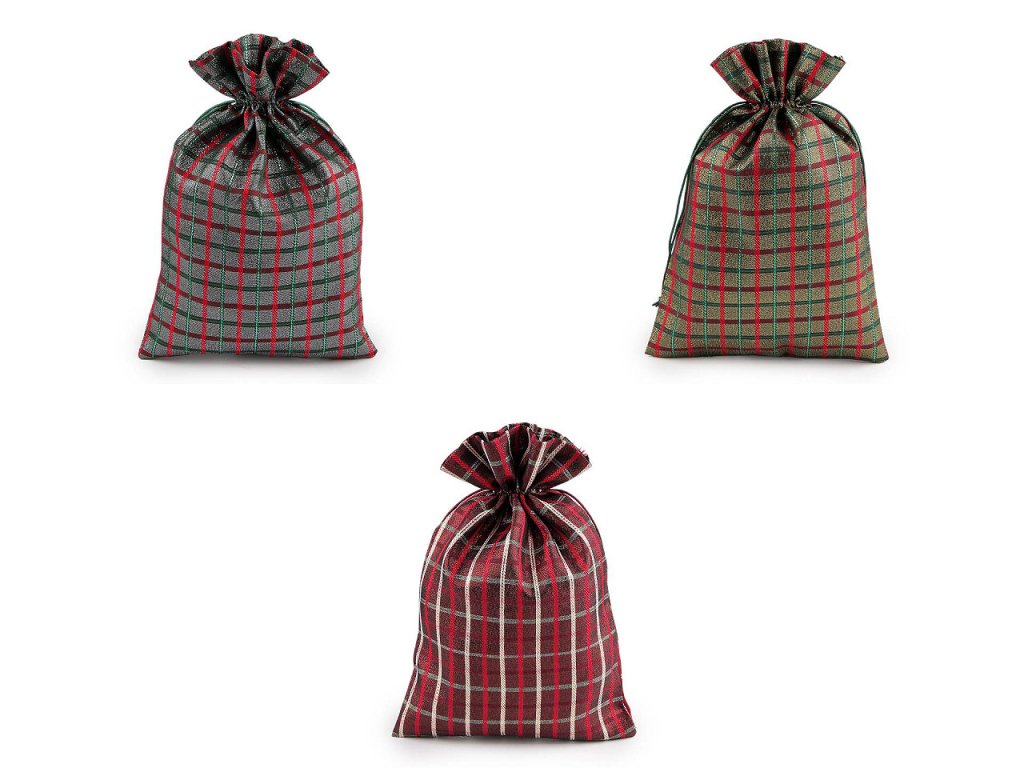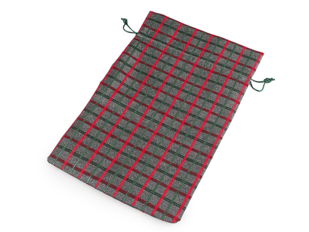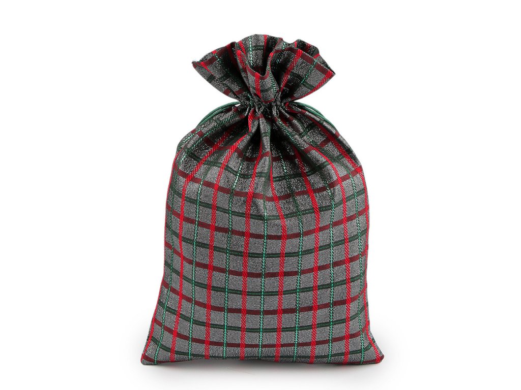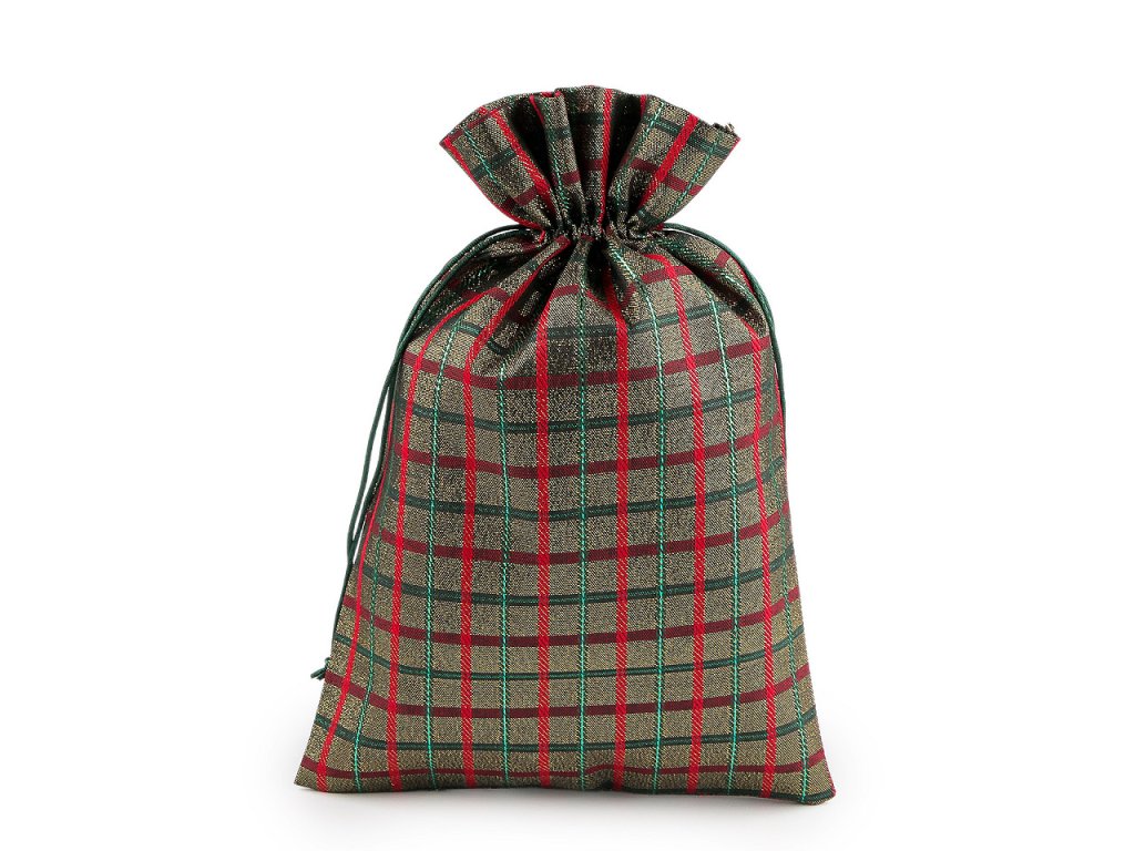 Vánoční dárkový pytlík káro s lurexem 20x30 cm