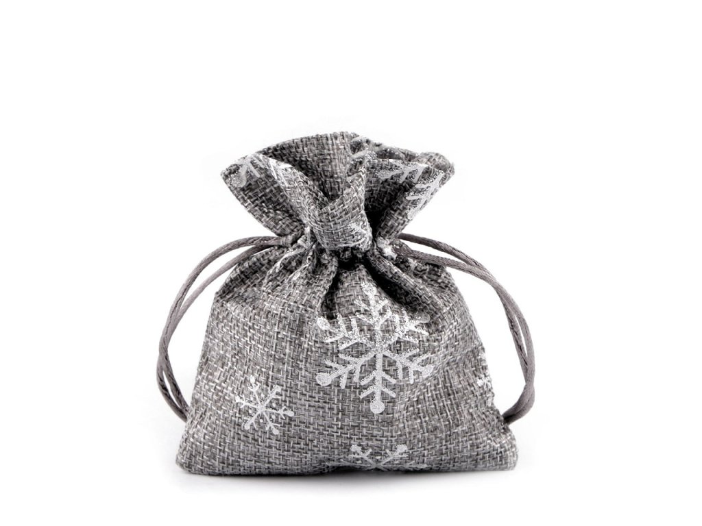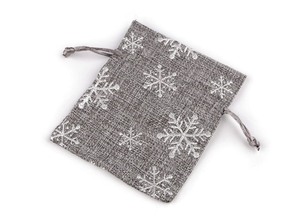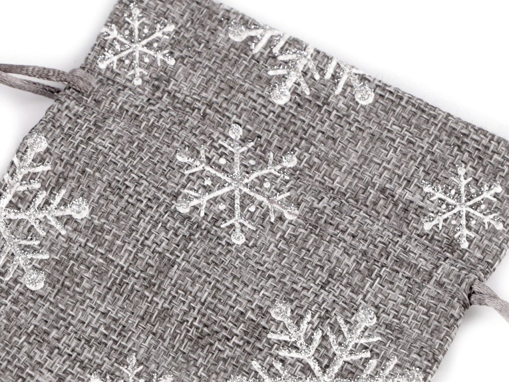 Malý dárkový pytlík s potiskem vloček je zajímavý hrubou strukturou materiálu, který imituje jutu. Potisk je jemně ozdobený třpytivými glitry. Pytlík se stahuje pomocí saténových šňůrek. Do pytlíku můžete schovat drobné dárky nebo jej použít jako vánoční dekoraci. Můžete jej použít jako stylovou alternativu k tradičnímu balicímu papíru, která zaručeně potěší jak obdarovaného, tak i vás. Je také skvělý pro uskladnění drobných předmětů po celý rok.- Šíře: 10 cm