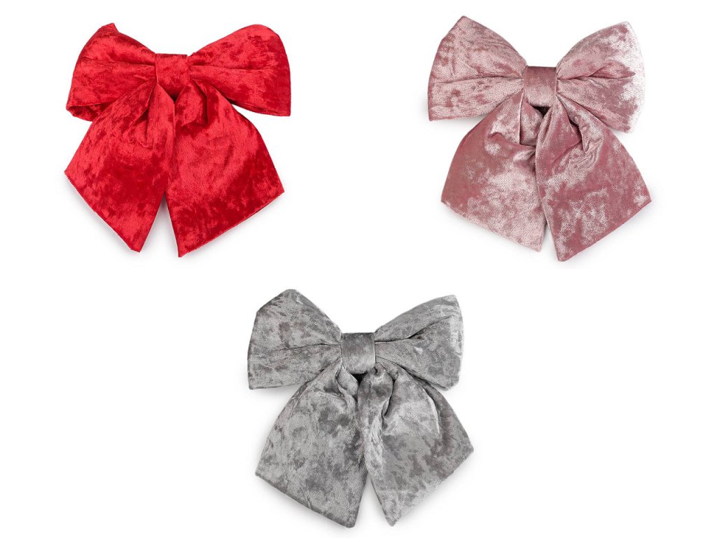 Sametová vánoční mašle vyniká svým elegantním vzhledem a působivou velikostí. Slavnostně ozdobí stromeček, dekorační věnce, dveře, židle, velké dárky apod. Připevníte ji lurexovým drátkem, který je součástí mašle.- Rozměry: cca 21 x 24 cm
