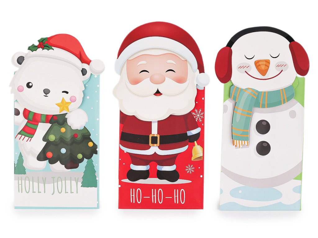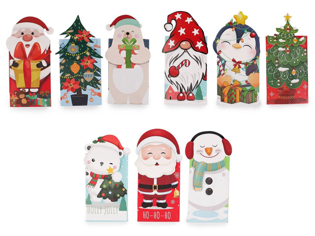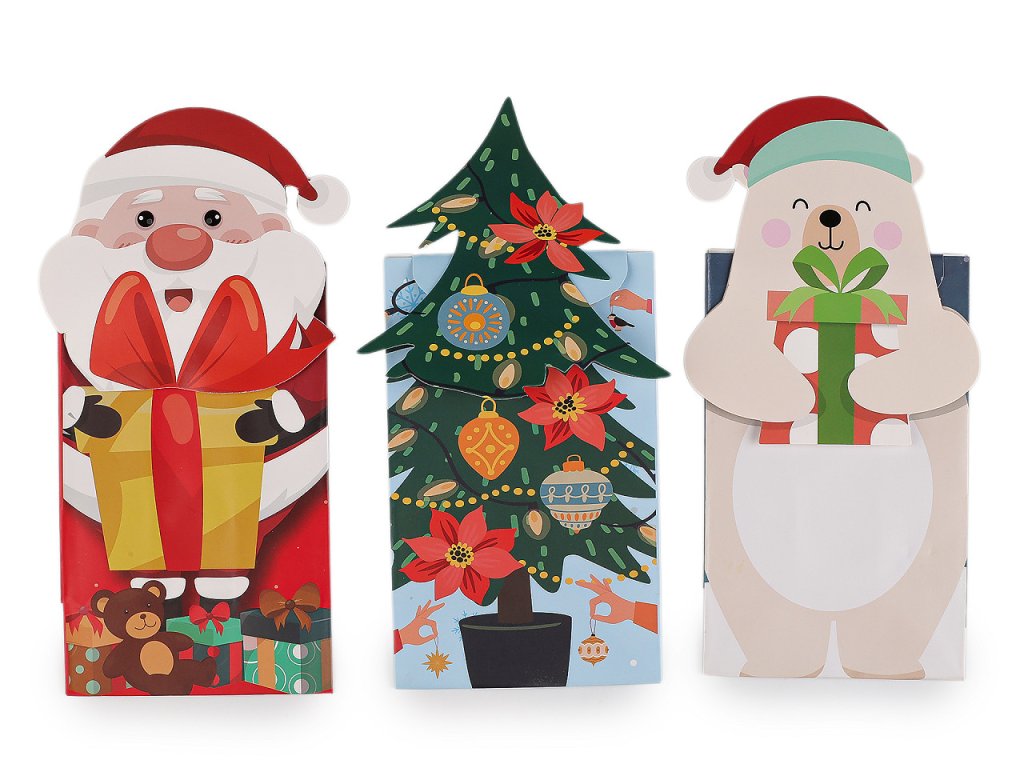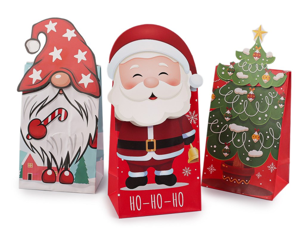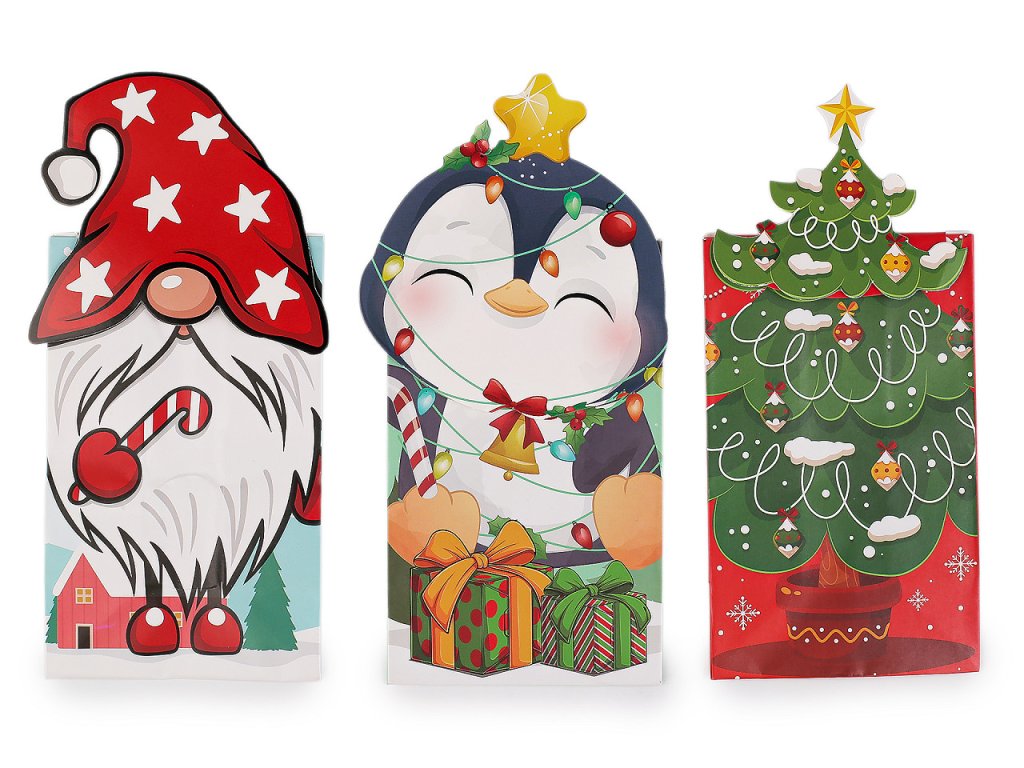 Papírové sáčky v sadě 3 ks zdobí stylové vánoční motivy. Skvěle se hodí na dárkové balení různých pochutin, ale také třeba kosmetiky, svíček a jiných maličkostí. Můžete je naplnit dobrotami na Mikuláše. Sáčky jsou matné, na přední straně zdobené potiskem. Mají rozšířené dno. Dají se uzavřít pomocí samolepky, kterou najdete pod horní ozdobou. Výška sáčku bez horní ozdoby je 13,5 cm, celková výška sáčku je cca 18,5 cm. Papírový sáček nemá atest na potraviny. Pochoutky a jiné laskominy doporučujeme vložit zabalené v sáčku.- Rozměry (ŠxVxH): 8,5 x 13,5 x 6 cm