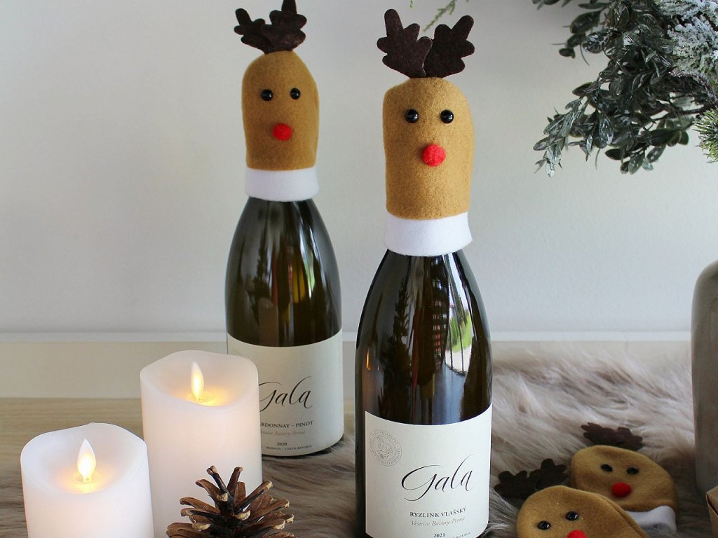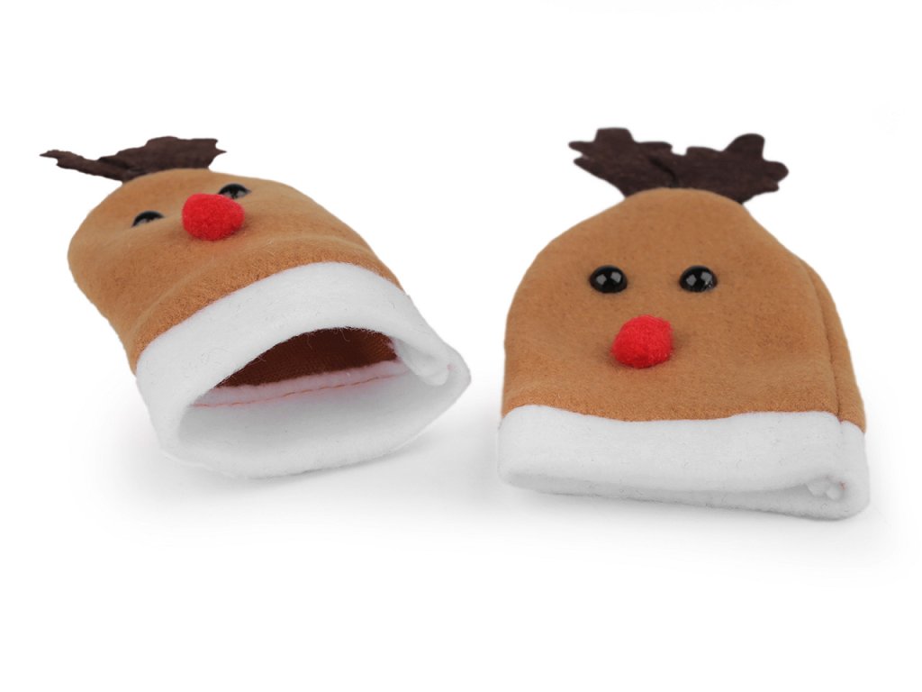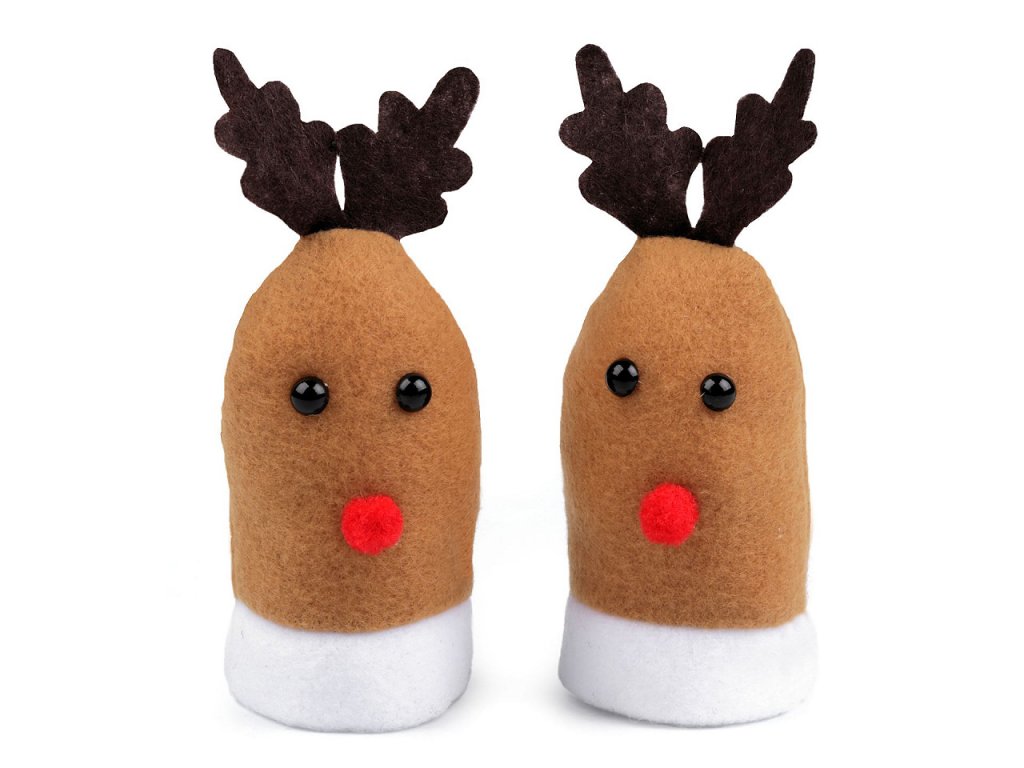 Vánoční mini čepice má design roztomilého sobíka. Vtipně ozdobí láhve piva či vína, vznikne tak originální dárek či dekorace. Čepice je vyrobená z měkkého filcu.- Obvod: cca 16 cm