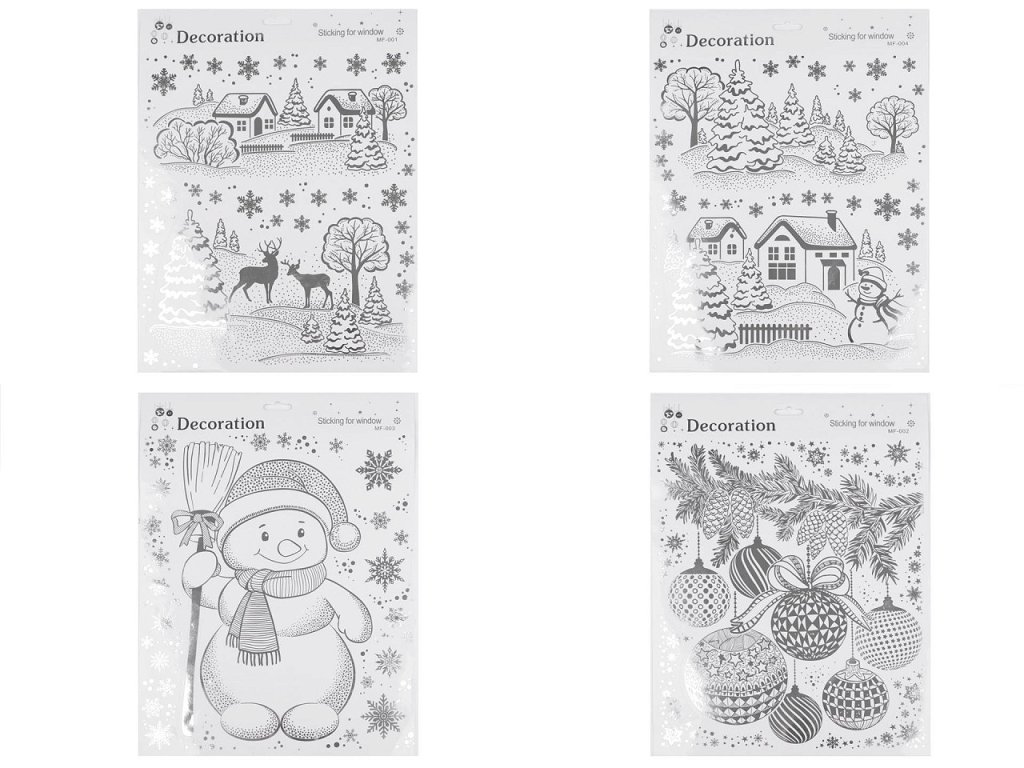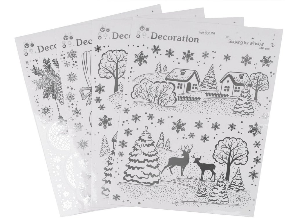 Vánoční samolepicí fólie využijete na ozdobení oken, zrcadel či skel. Snadno se aplikují i sundávají. Díky metalickému potisku dodají interiéru sváteční atmosféru. Varianta č. 1 obsahuje 2 větší samolepky s rozměry cca 14 x 21 cm a menší vločky. Varianta č. 2 obsahuje 2 větší samolepky s rozměry cca 14 x 21 cm a menší vločky. Varianta č. 3 obsahuje 1 velkou samolepku s rozměry cca 17 x 27 cm a menší vločky. Varianta č. 4 obsahuje 1 velkou samolepku s rozměry cca 22 x 27 cm a menší vločky.- Rozměry balení: 24 x 33 cm