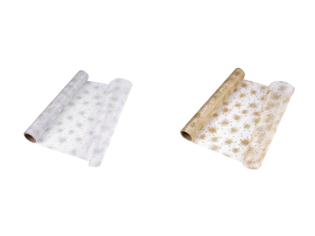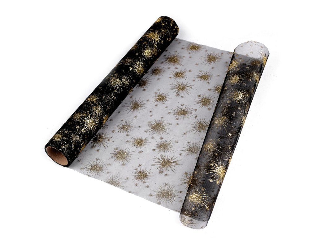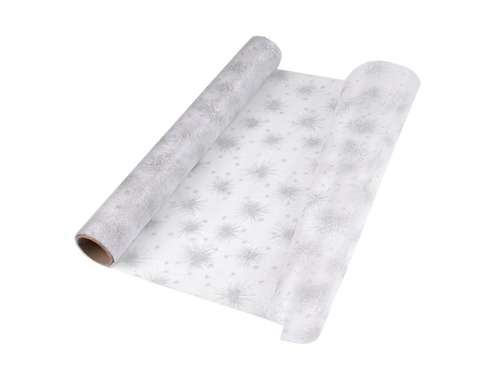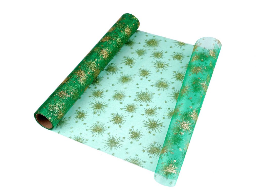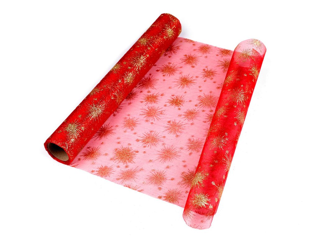 Luxusní organza je zdobená motivy hvězd z glitrů, které se efektně třpytí. Hodí se ke slavnostním příležitostem. Okraje organzy nejsou obšité. Použití: Organzu můžete využít na dekoraci slavnostního stolu. Je vhodná také na aranžování vánočních vazeb, věnců a ikeban, kde vynikne její půvab. V balení může být jeden prostřih.- Šíře: 36 cm