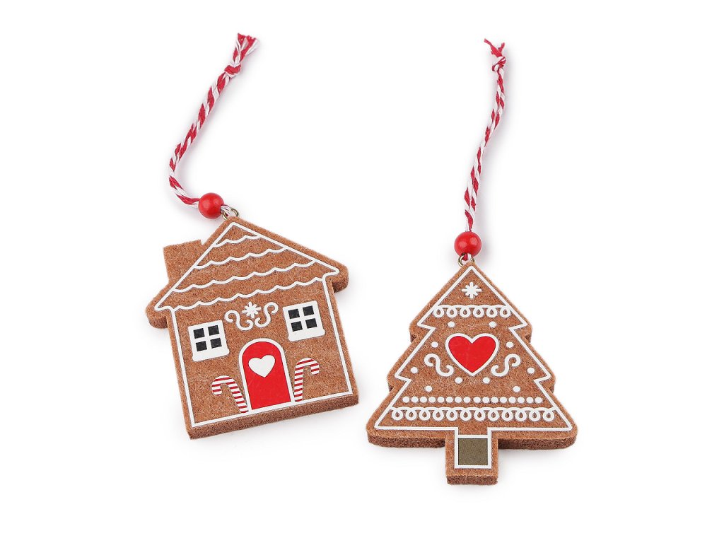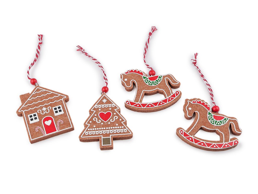 Vánoční perníčky k zavěšení filc koník, stromeček, domeček