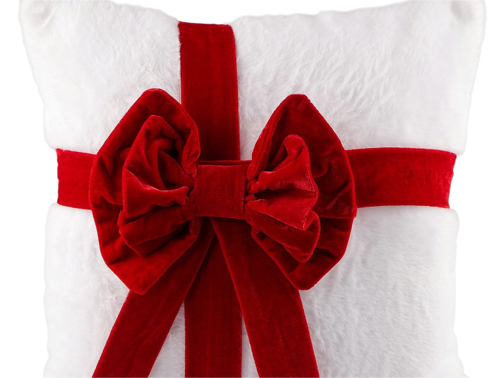 Vánoční povlak na polštář zdobí velká dvojitá sametová mašle. Je elegantním doplňkem pro váš interiér, který přináší kouzlo sváteční atmosféry. Dominantní červená mašle kontrastuje s bílým povrchem povlaku, což vytváří dojem dárku přímo pod vánočním stromečkem. Povlak je jednostranný, přední strana je plyšová, zadní strana je sametová. Povlak má pohodlné zapínání na zip. Díky balení může být mašle pomačkaná. Před prvním použitím ji doporučujeme napařit. Toto je povlak na polštář, výplň můžete koupit zvlášť.- Rozměry: cca 40 x 40 cm