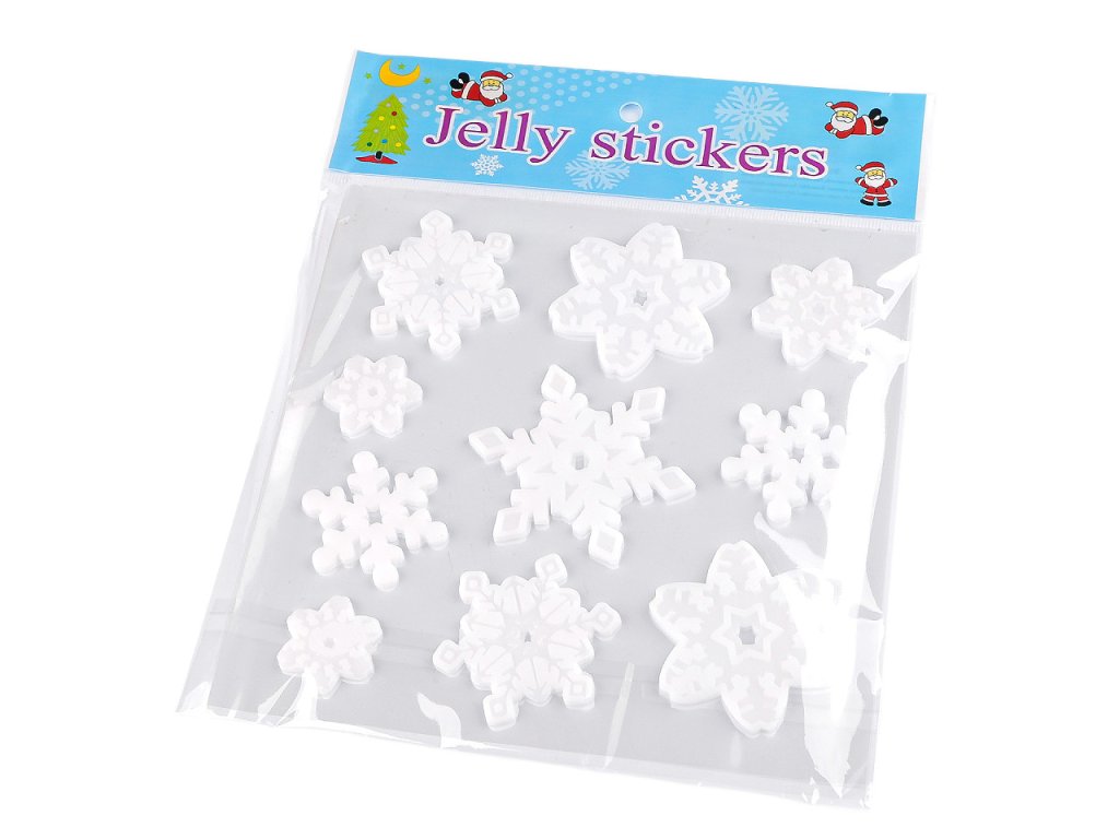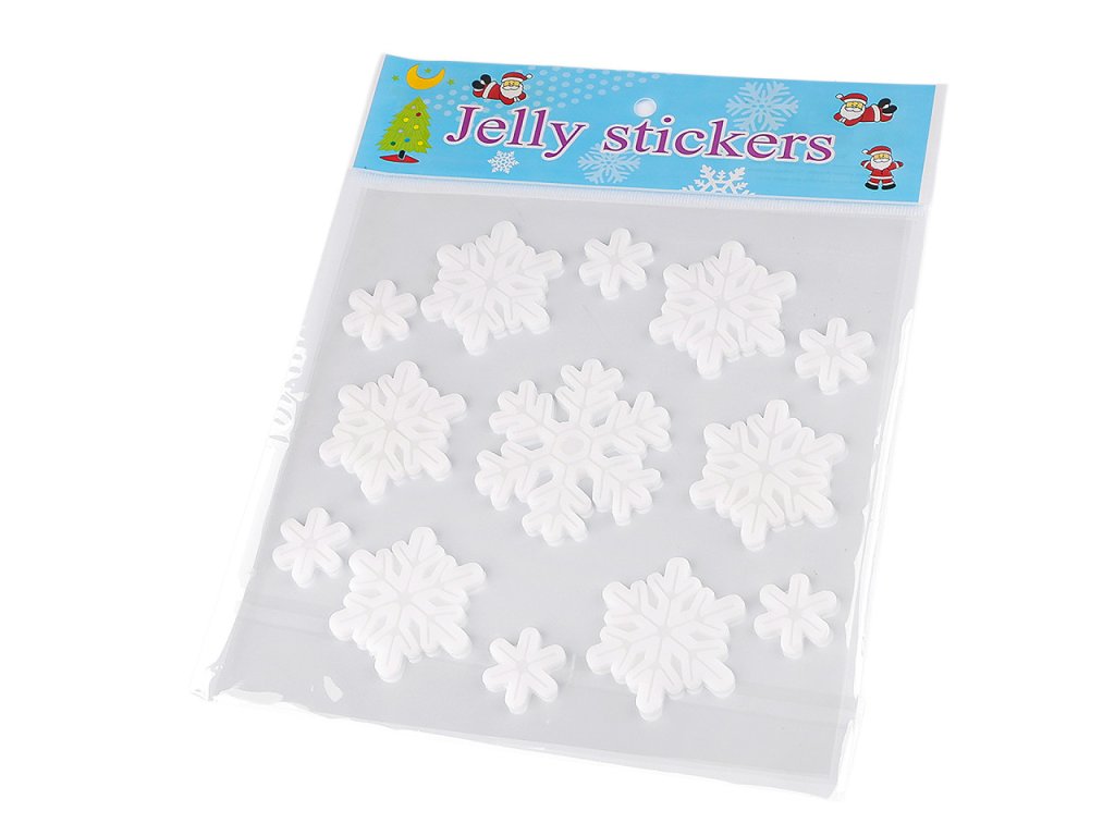 Dekorační gelové vločky využijete na ozdobení oken, zrcadel či různých skel během zimního období. Neobsahují lepidlo, jednoduše přilnou na rovný hladký povrch. Snadno se sloupnou, nezanechávají stopy, dají se přemístit a znovu použít. Varianta č. 1 obsahuje 10 samolepek. Varianta č. 2 obsahuje 13 samolepek. Varianta č. 3 obsahuje 9 samolepek. Průměr samolepek je v rozmezí cca 2,3 - 11,5 cm.- Rozměry balení: 20 x 20 cm