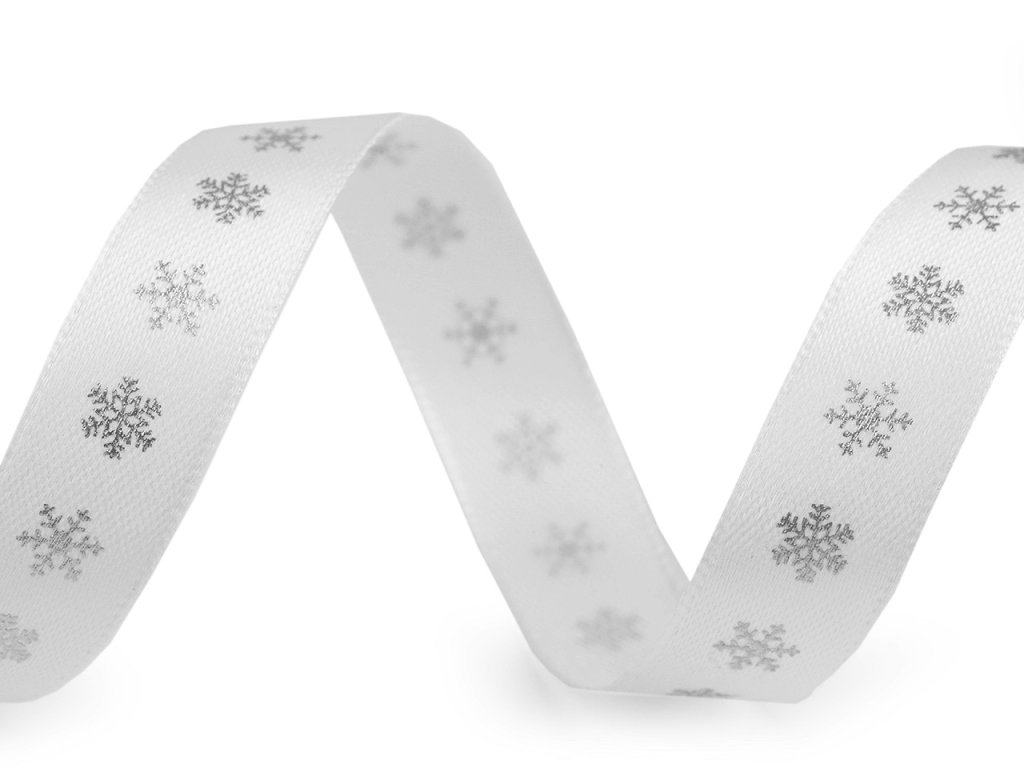 Vánoční saténová stuha vločky šíře 15 mm
