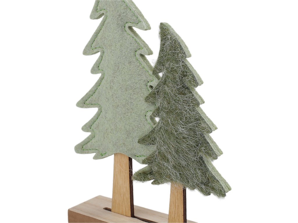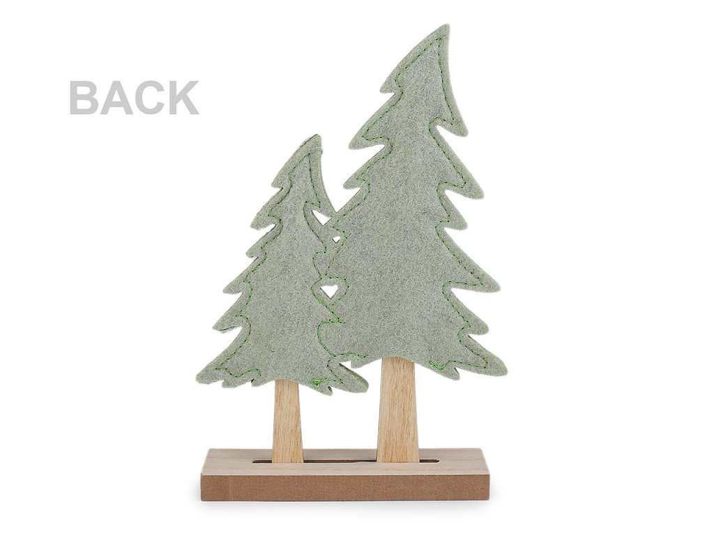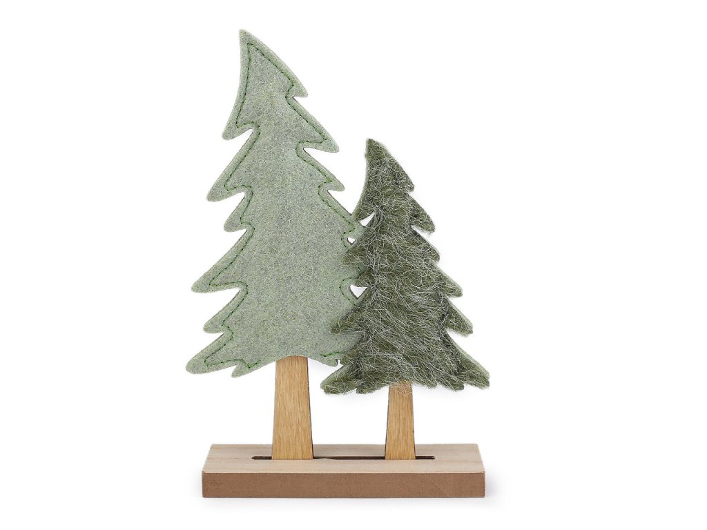 Dekorační stromečky mají základ z pevného filcu a podstavec ze dřeva. Vyniknou na okenním parapetu, krbové římse, poličce i na sváteční tabuli.- Rozměry: 14 x 4 cm