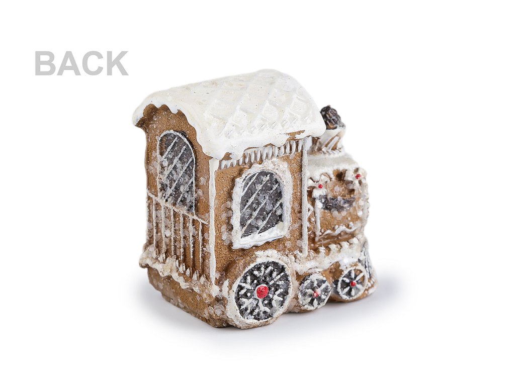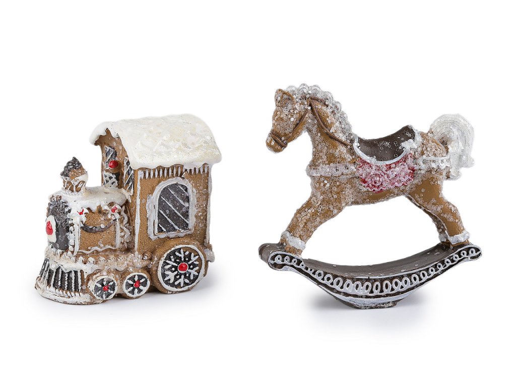 Malé vánoční dekorace vynikají působivými detaily a věrohodně imitují perník. Můžete je zakomponovat do různých zimních aranžmá, věnců, vesniček apod. Dekorace jsou jemně pokryté třpytivými glitry, které působí jako námraza.- Rozměry: č. 1: 4,5 x 4,5 x 3 cm