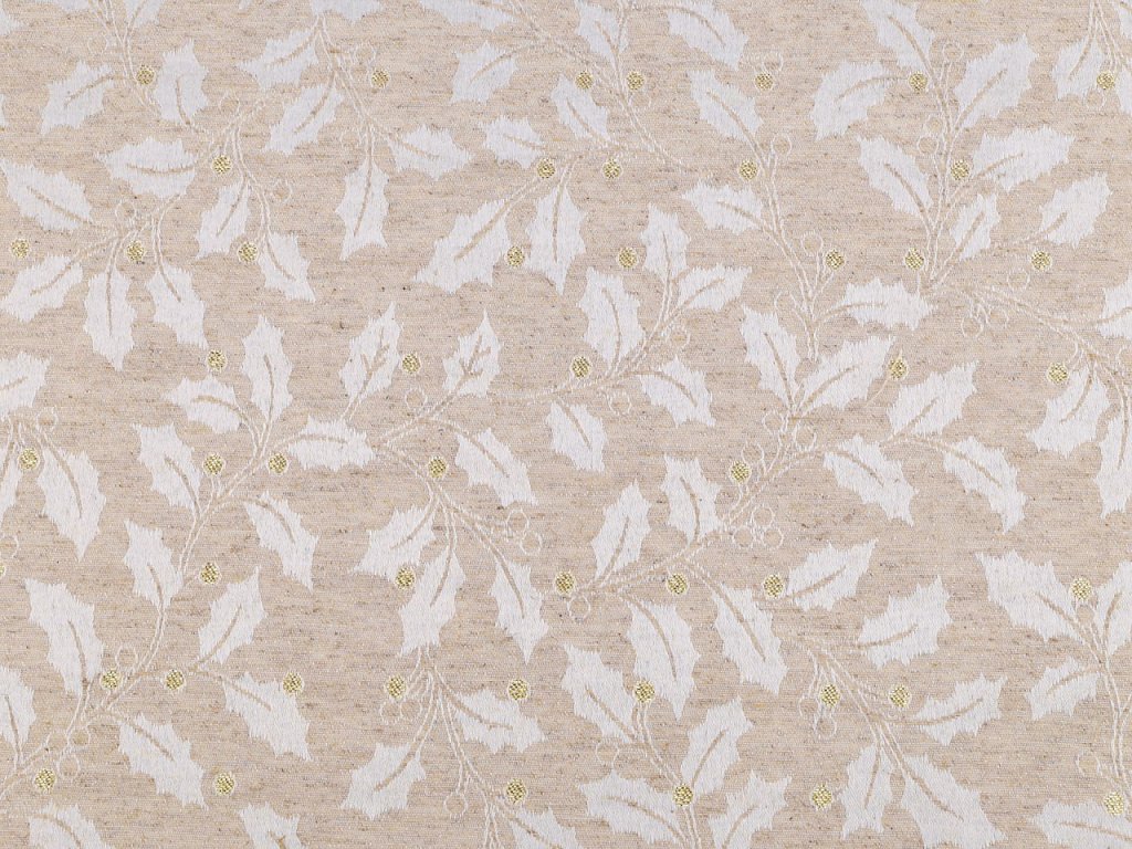 Vánoční žakárová látka působí luxusně. Vetkaný lurexový vzor dodá výrobkům eleganci. Můžete z ní ušít ubrusy na sváteční tabuli, prostírání, běhoun, dekorační polštáře apod.- Gramáž: 250 g/m²