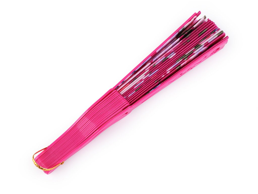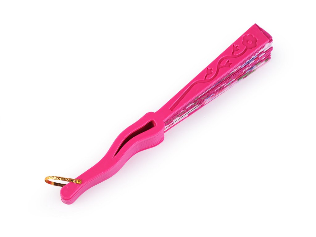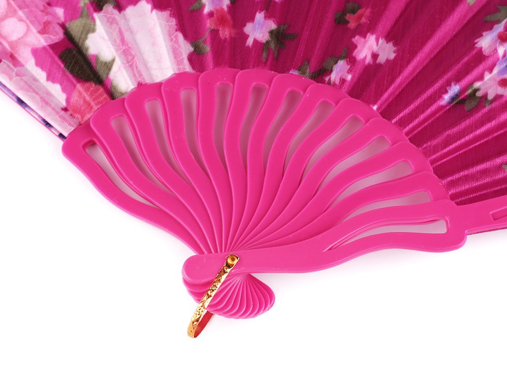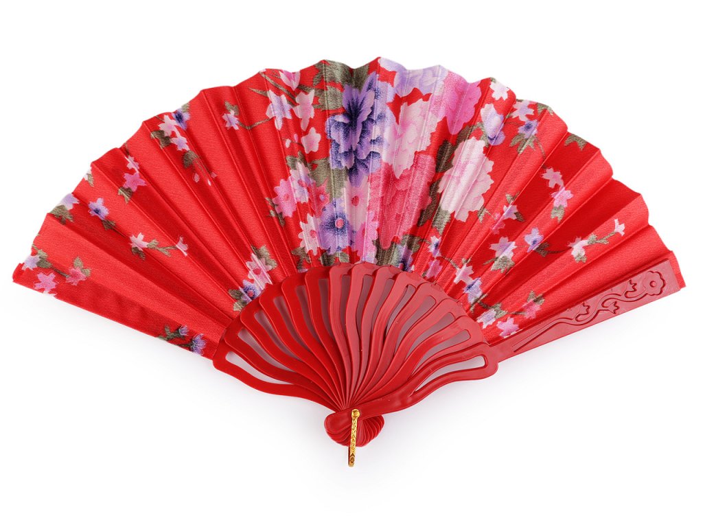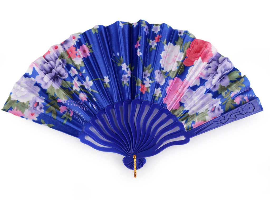 Textilní vějíř zdobí potisk květů. Využijete ho na společenské události, na karnevaly i různá taneční vystoupení. Rukojeť je plastová s poutkem. Vějíř je ideální pro horké letní dny, kdy potřebujete rychlé osvěžení, stane se vaším oblíbeným společníkem při každé příležitosti.- Délka: 23 cm
