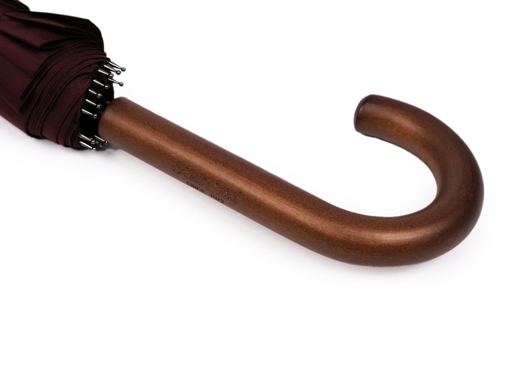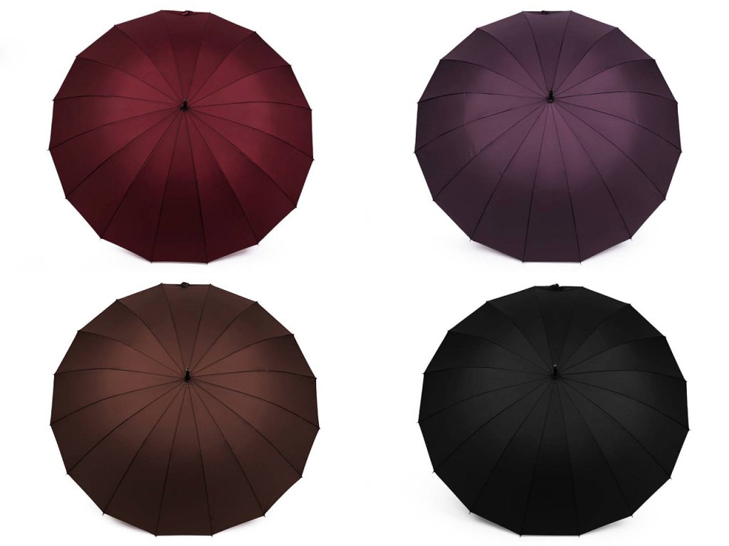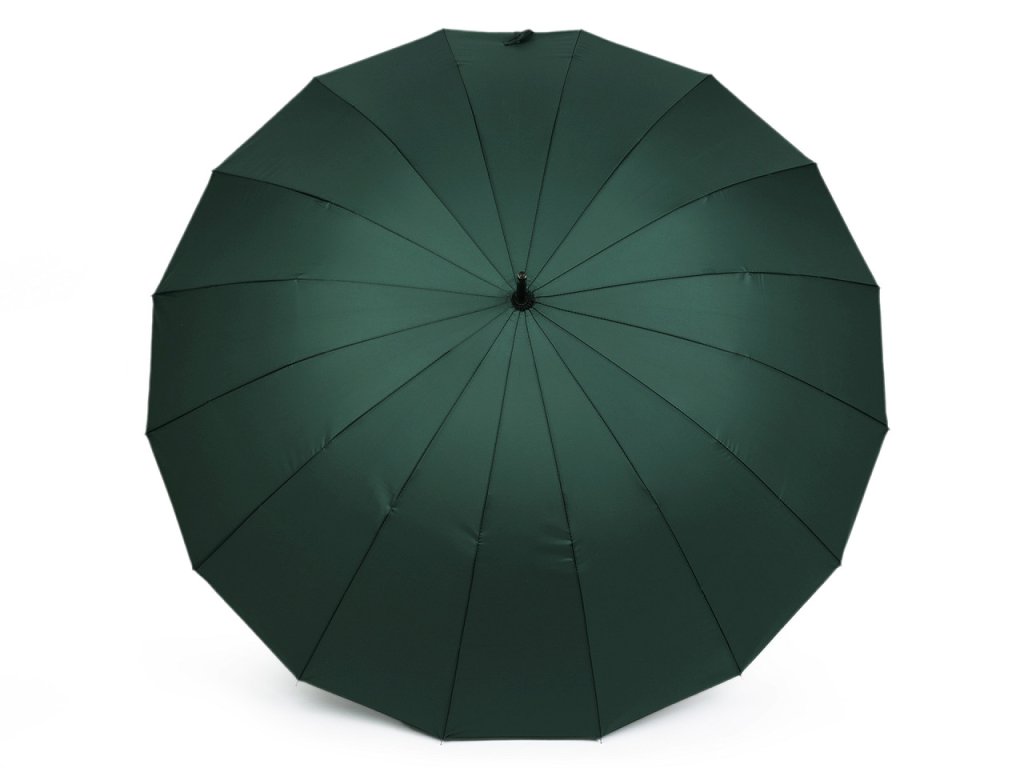 Velký luxusní deštník s průměrem 113 cm je vhodný jako deštník pro dva (rodinný deštník). Je vystřelovací, má klasickou tyč zakončenou pevnou dřevěnou rukojetí. Skládá se z 16 výsečí, díky kterým se deštník řadí mezi špičkové kousky. V kombinaci s pružnými lamelami a také díky velké hloubce má deštník vysokou pevnost a stabilitu. Je vybavený UV filtrem, chrání před slunečním zářením. Hloubka deštníku je 28 cm.- Rukojeť: dřevěná