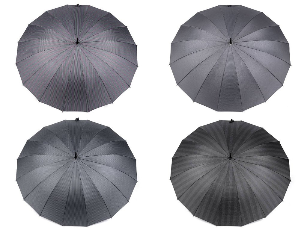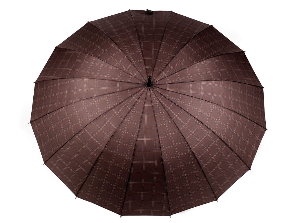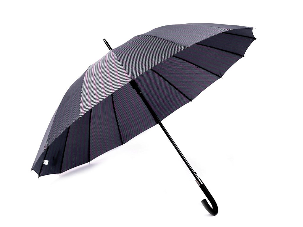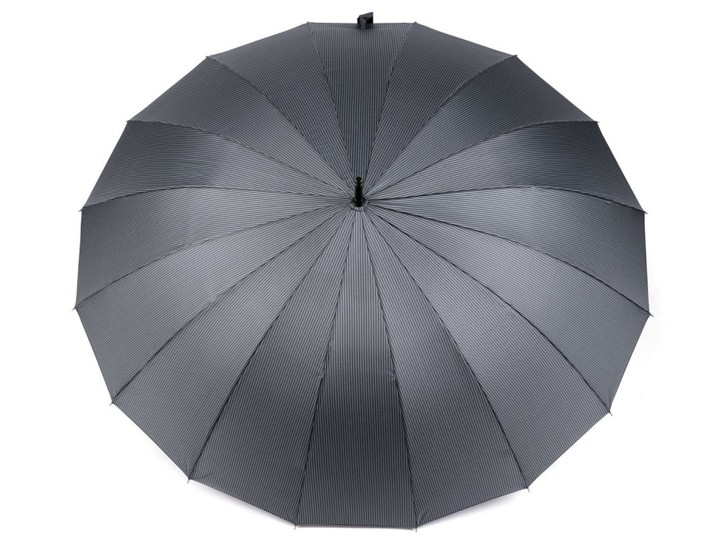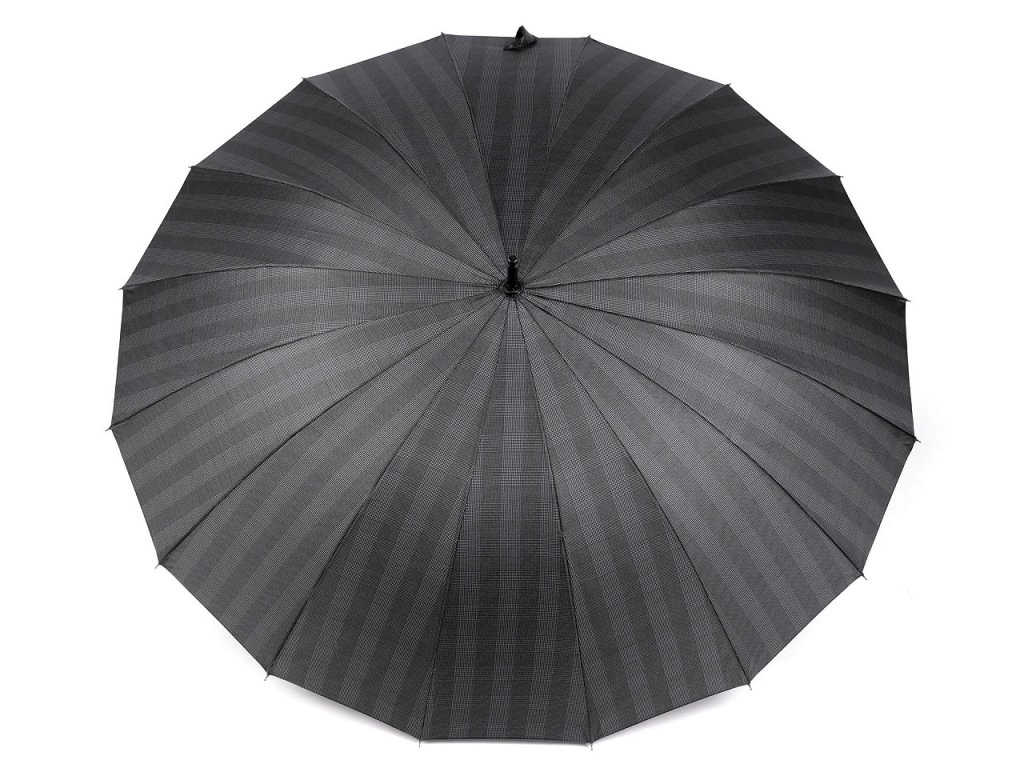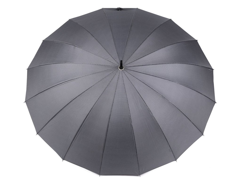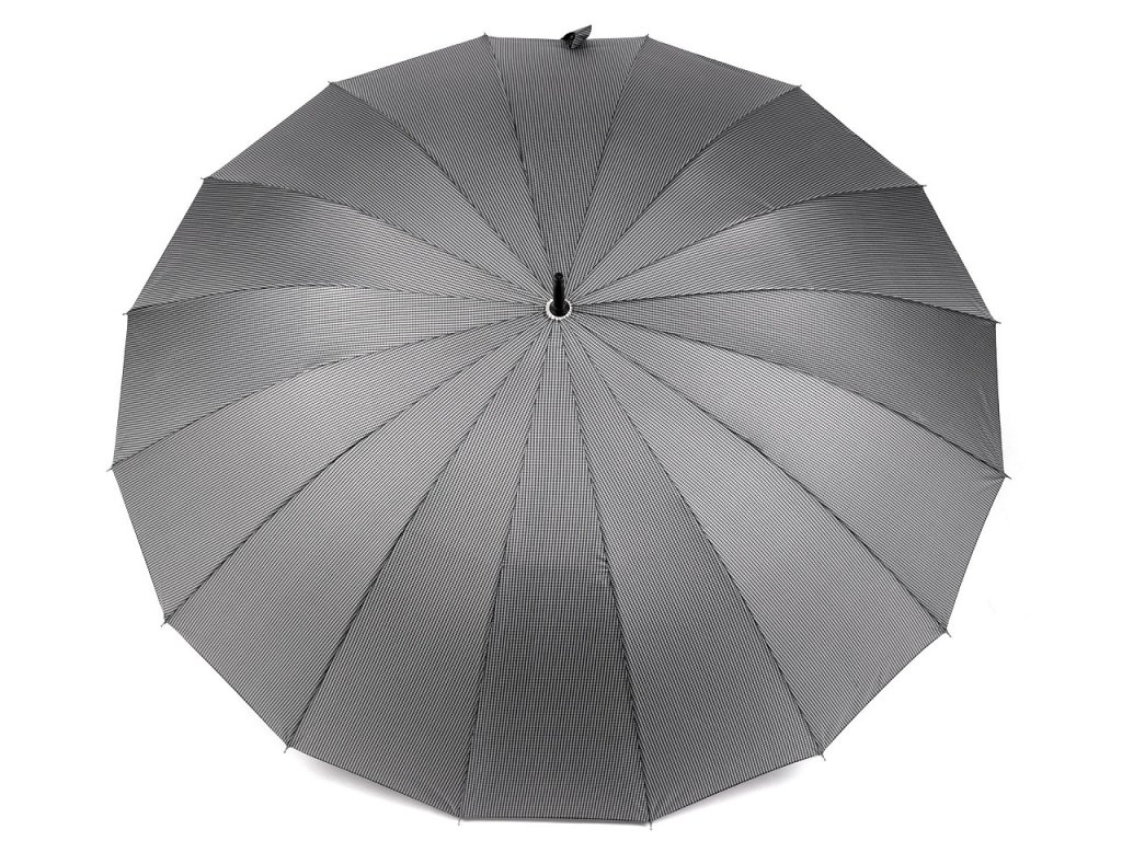 Velký vystřelovací deštník vás spolehlivě ochrání před nepřízní počasí. Skládá se z 16 polí. Díky jeho velkému průměru 117 cm je vhodný jako deštník pro dva (rodinný deštník). Konstrukce je vyrobená z pružných lamel zajišťujících vysokou pevnost a stabilitu. Deštník má klasickou tyč zakončenou pevnou rukojetí. Hloubka deštníku je 28 cm.- Rukojeť: plastová