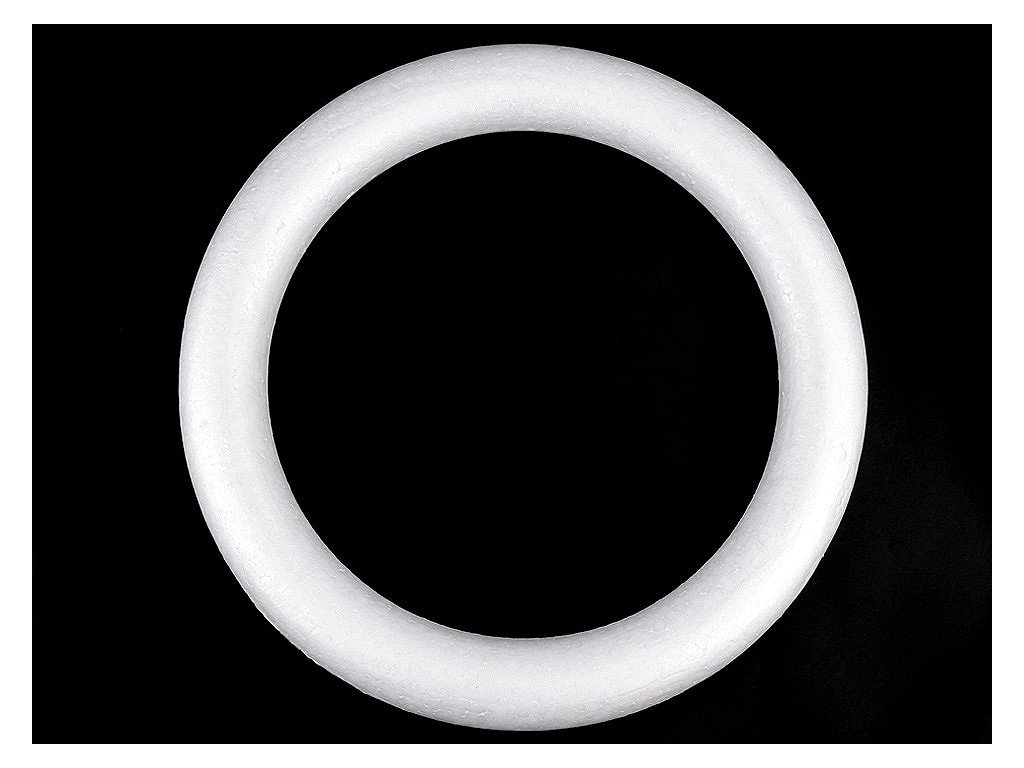 Polystyrenový věnec je vhodný k celoročnímu aranžování a zdobení. Můžete ho ozdobit stuhami, květy, plody apod. Využijete ho také na techniku nešitého patchworku.- Vnitřní průměr: 25,5 cm