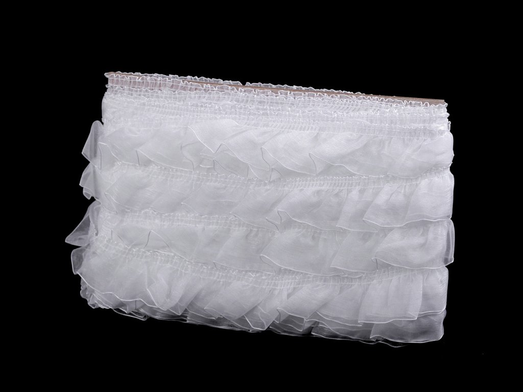 Organzový volánek se jemně leskne a je pevně prošitý. Ozdobíte s ním sukně, šaty nebo halenky. Můžete ho našít také na karnevalové sukýnky, šatičky na panenky, dekorační polštářky apod.
