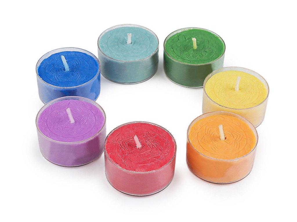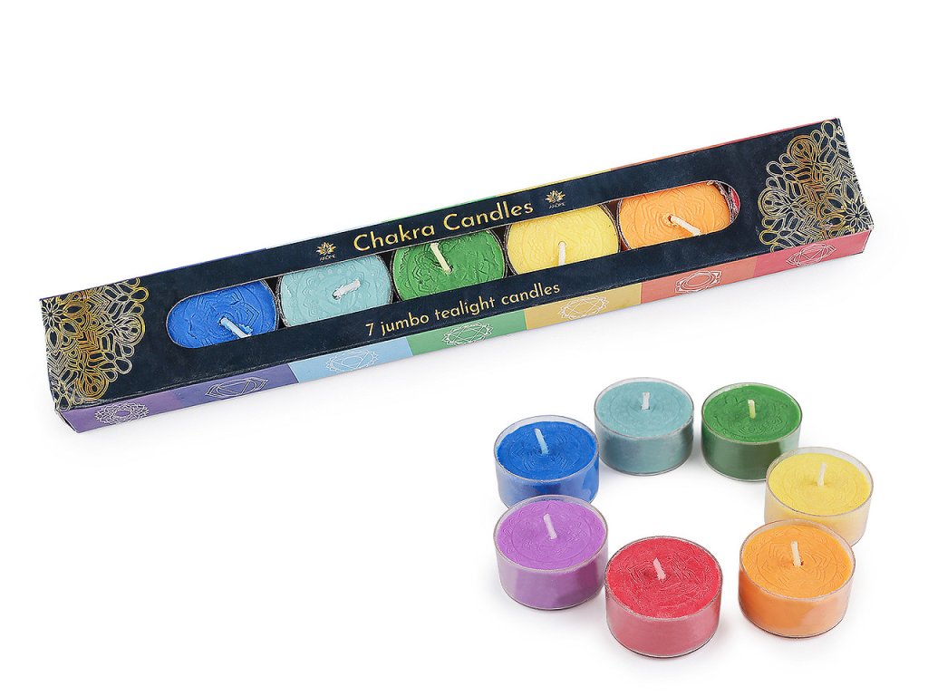 Vonná čakrová čajová svíčka, sada 7 ks
