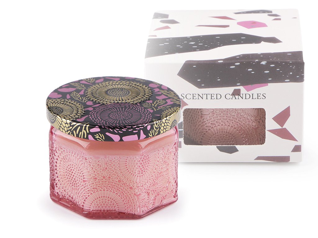Vonná svíčka ze sójového vosku ve skleněné dóze je ideální volbou pro vytvoření útulné atmosféry v každém interiéru. Můžete ji použít při relaxaci, meditaci nebo koupeli pro navodění pocitu klidu. Na dóze je strukturovaný orientální motiv. Svíčky jsou balené v papírové krabičce, poslouží i jako dárek. Vůně svíček je u všech variant stejná - jemná svěží květinová. Hmotnost vosku je 70 g. Doba hoření uvedená výrobcem je 2-3 hodiny.- Průměr: 7 cm