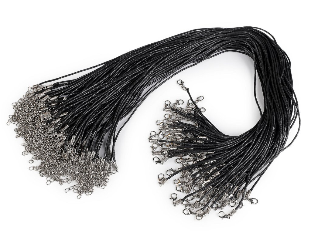 Voskovaná šňůrka s karabinkou z nerezové oceli délka 45 cm