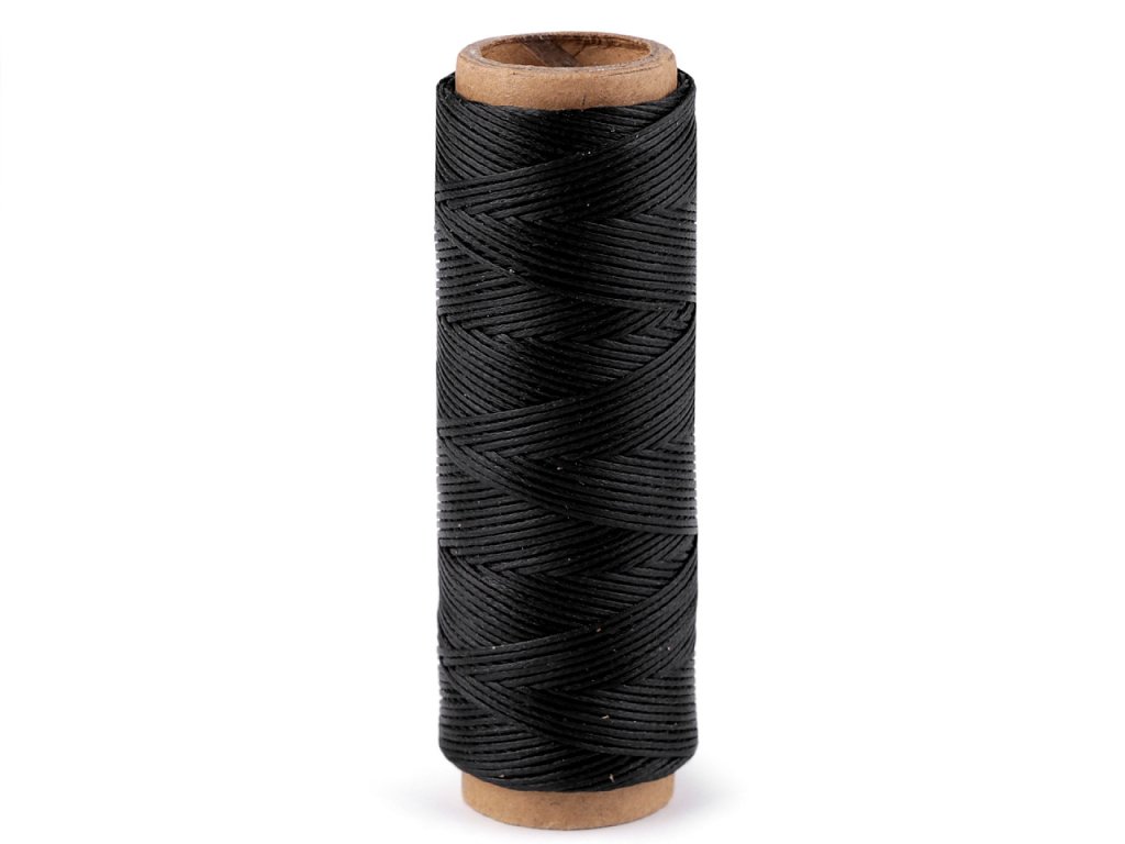 Voskovaná polyesterová nit je pevná a odolná, díky voskované úpravě se jí netřepí konce. Je poměrně silná, využijete ji v galanterii na přišívání knoflíků na kabelky, bundy, tašky apod. Využívá se na dekorativní švy např. u obalů na knihy, obuvi, v sedlářství, čalounictví apod.- Průměr: 1 mm