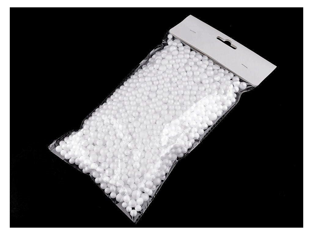 Drobné dekorační polystyrenové kuličky využijí především floristé a aranžéři. Dokážou vykouzlit dokonalou iluzi sněhu. Můžete je využít k ozdobení truhlíků, květináčů apod. Jsou zajímavé nasypané v průhledných nádobách a dozdobené různými větvičkami a stvoly. Jsou vhodné i jako výplň do šitých dekorací a dutých předmětů. Používají se i na výrobu dekoračních stromečků. Větší polystyrenová koule se polepí těmito drobnými, napíchne se na vhodný kmen a naaranžuje do květináče. V sáčku se nachází cca 1300 ks.- Průměr: 5 - 10 mm