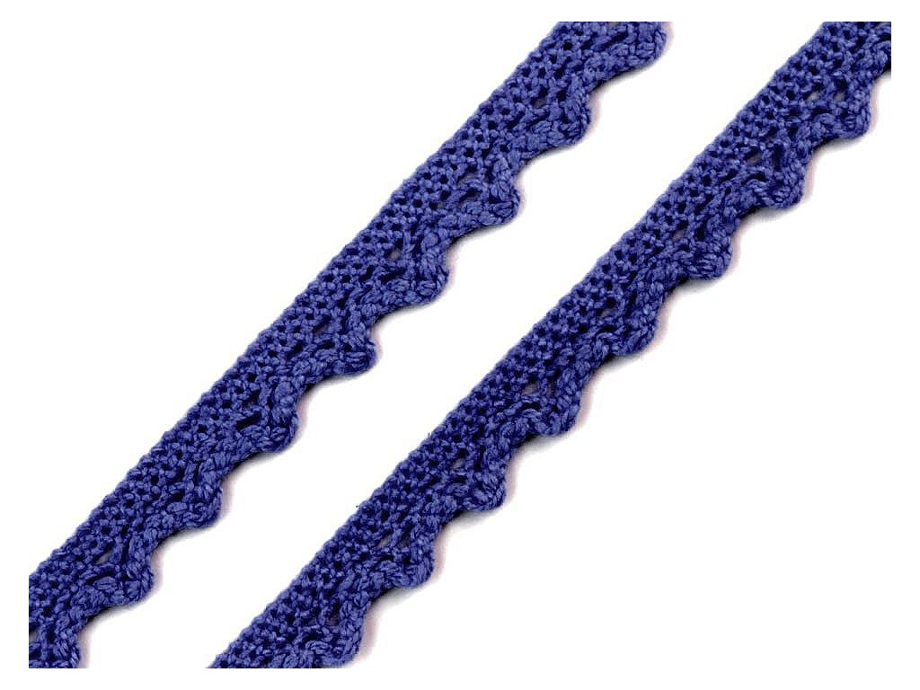 Výprodej - Bavlněná krajka paličkovaná šíře 11 mm - modrá tm. 22,5m