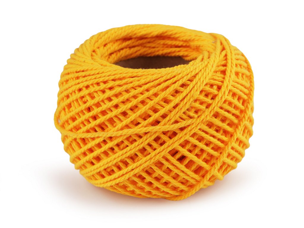 Bavlněná příze připomíná provázek. Je vhodná na háčkování tašek, síťovek, klobouků a různých dekorací.