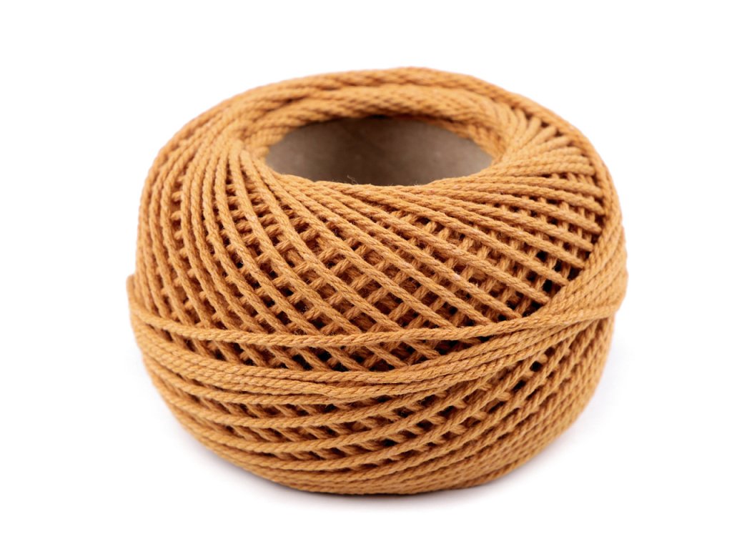 Bavlněná příze připomíná provázek. Je vhodná na háčkování tašek, síťovek, klobouků a různých dekorací.