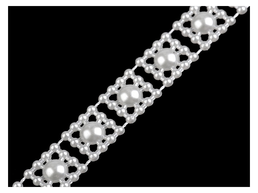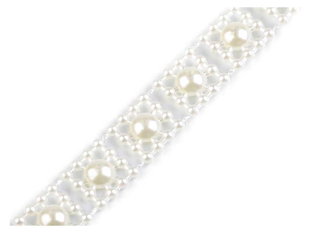 Výprodej - Borta s perlami - půlperle šíře 9 mm - bílá perleť, 9m