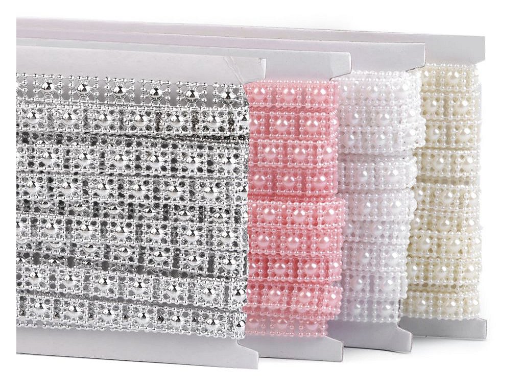 Borta s perlami působí elegantně. Můžete ji stříhat na libovolnou délku a lepit. Lze ji rozstříhat i na jednotlivé čtverečky.