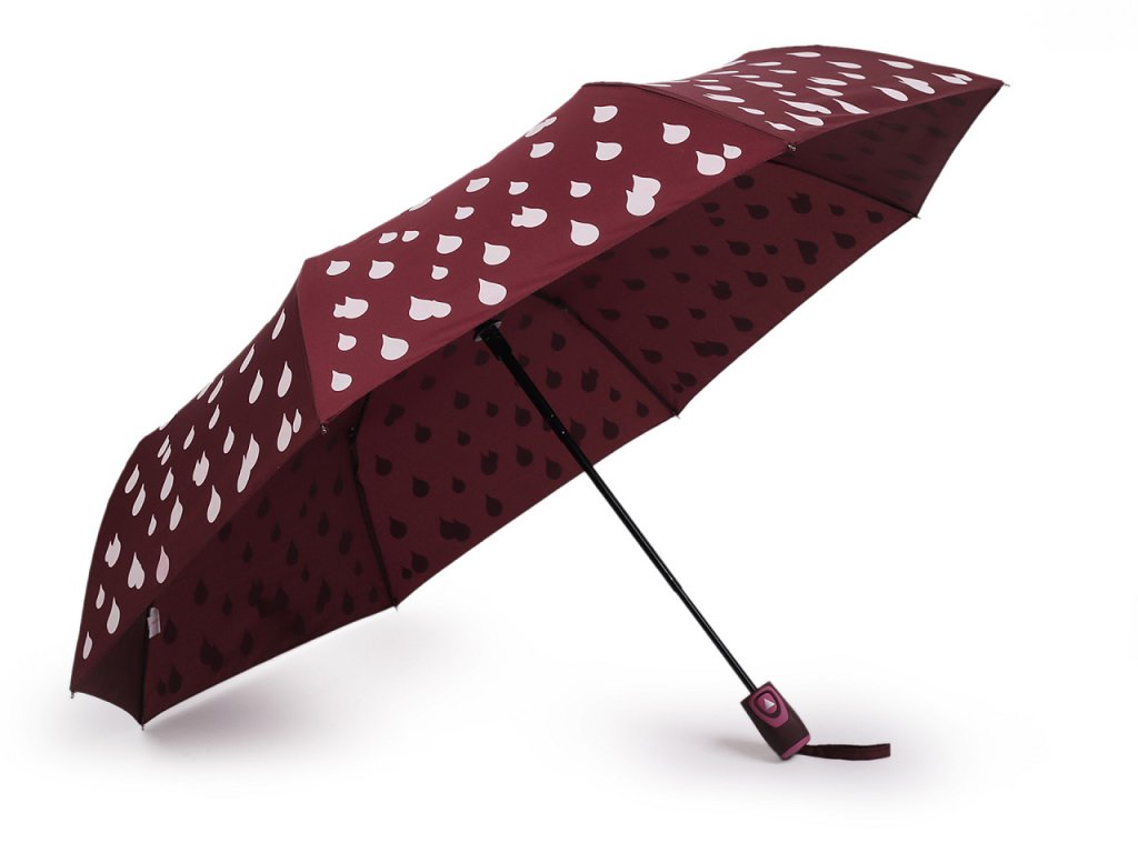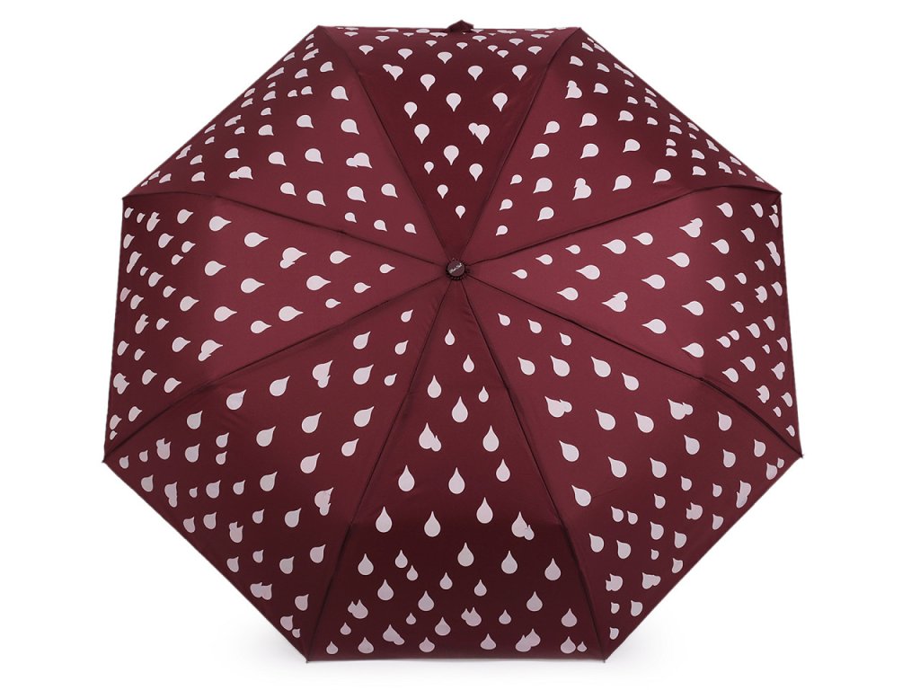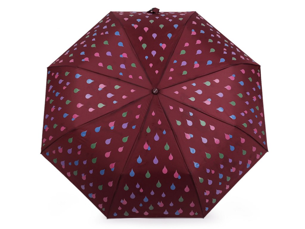 Výprodej - Dámský skládací vystřelovací deštník kapky kouzelný - bordó sv.