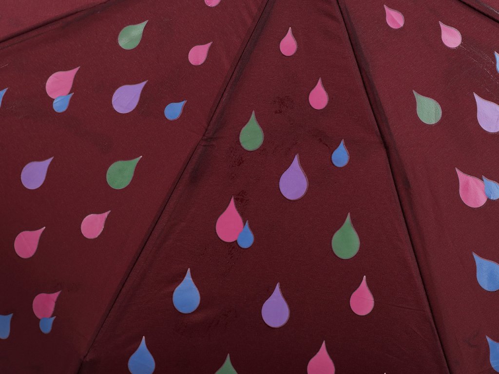 Kouzelný dámský skládací deštník mění barvy kapek při kontaktu s vodou. Doma se vám bude deštník jevit jako nenápadný, s bílými kapkami a jen co zaprší, kapky se nádherně vybarví.