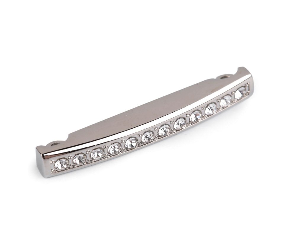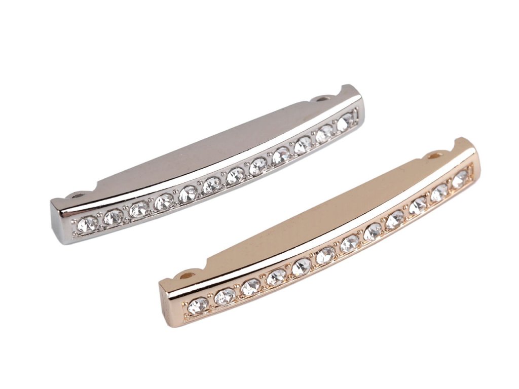 Elegantní kovová ozdoba je osázená třpytivými broušenými kamínky.