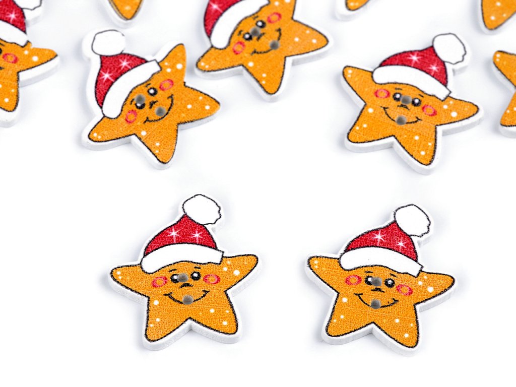 Výprodej - Dřevěný dekorační knoflík vánoční hvězda - 10ks