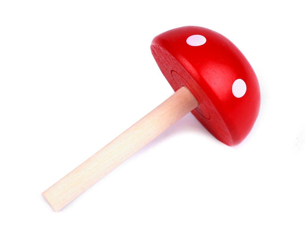 Dřevěný hříbek v podobě muchomůrky slouží jako pomůcka k látání ponožek, ale využijete ho i k dekoraci.
