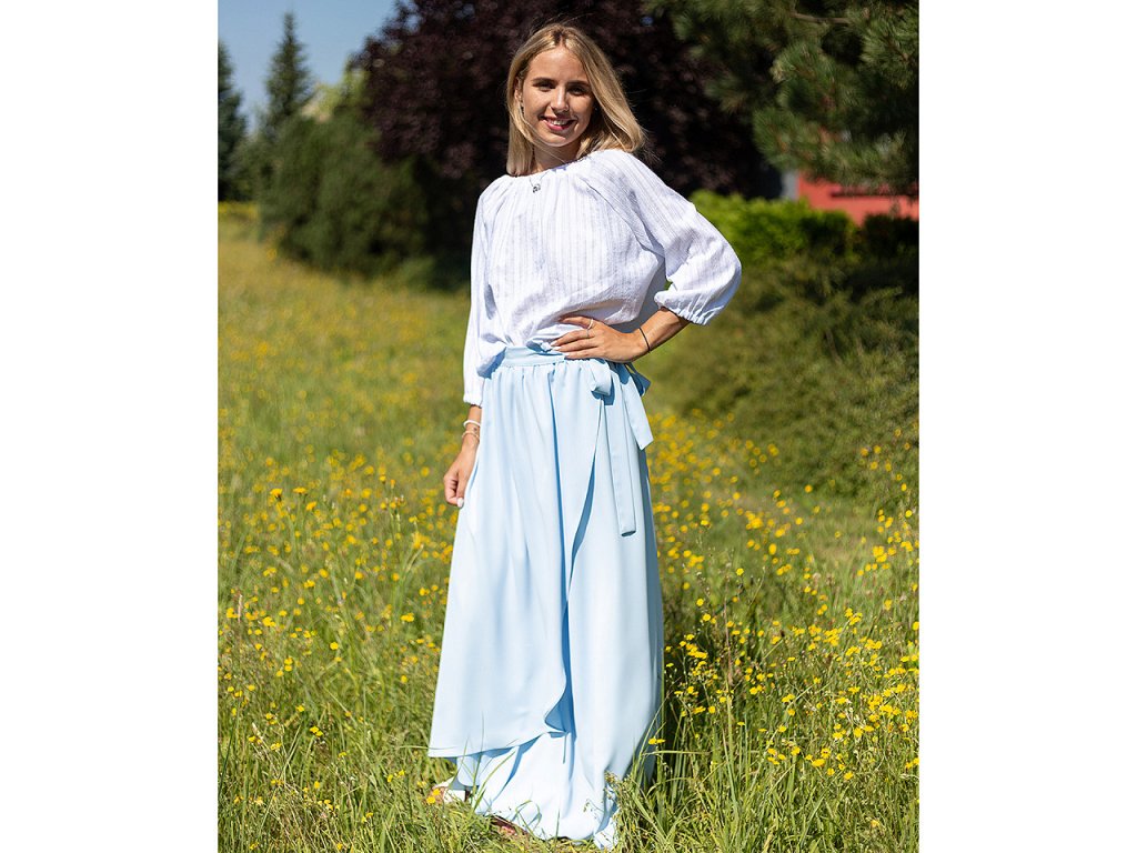 Imitace hedvábí je lehký splývavý materiál, příjemný na dotek. Zdobí ji jemné proužky.