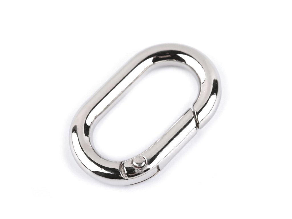Jednoduchá oválná karabina vám poslouží na sepnutí klíčů i k upevnění popruhů a přívěsků na kabelky či tašky.- Vnitřní rozměry: 12 x 25 mm