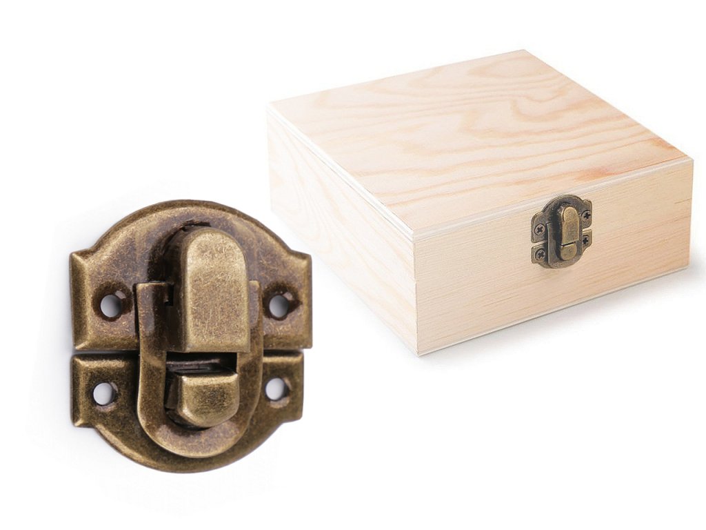 Kovové zapínání ve vintage stylu bude praktickým i ozdobným prvkem, který využijete k uzavírání dřevěných krabiček, menších truhliček, šperkovnic, tašek, či kufříků.