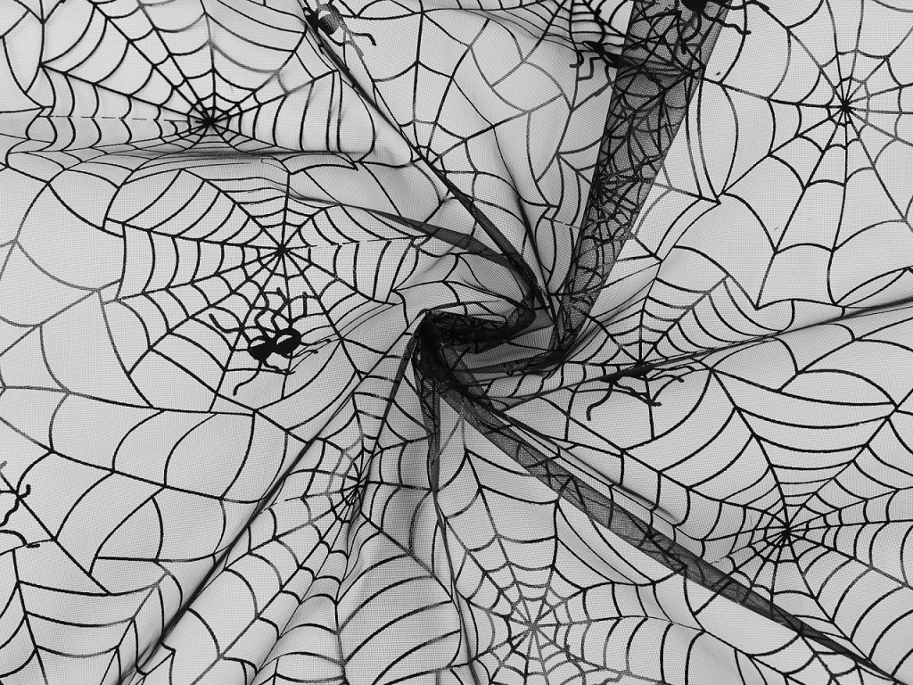 Organza s potiskem pavučiny je vhodná k dekoračním účelům.