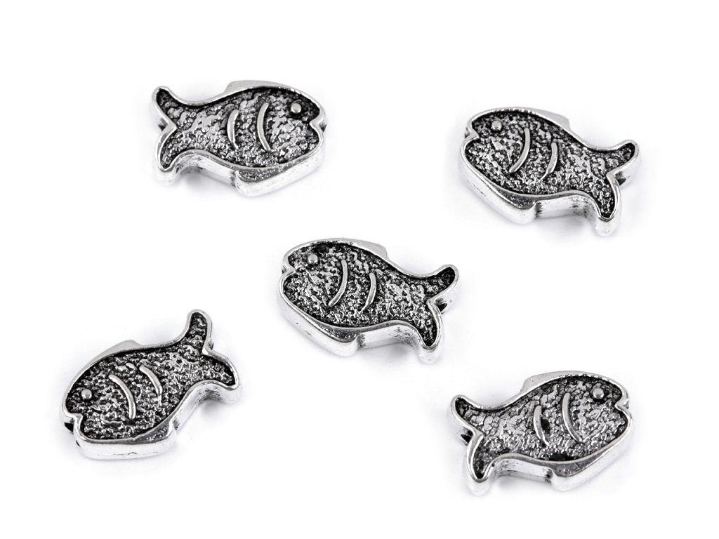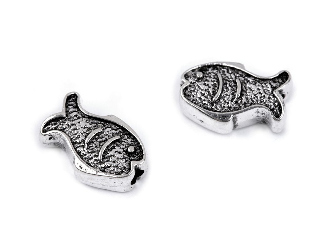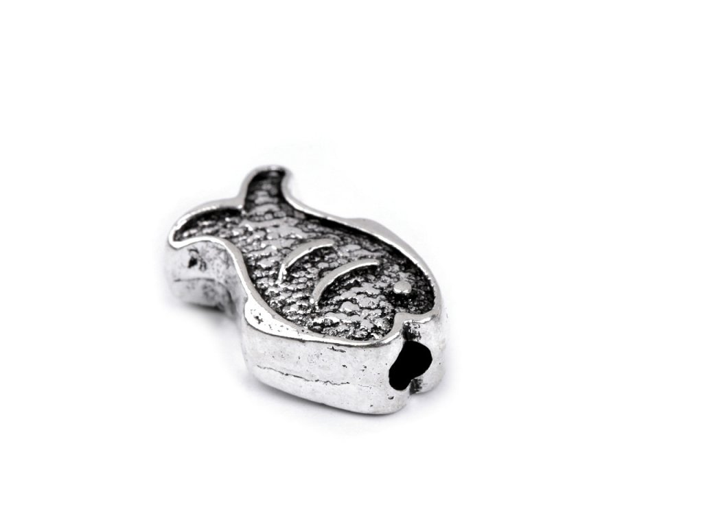 Výprodej - Ozdobný díl / korálek ryba 8x12 mm - platina, 10ks