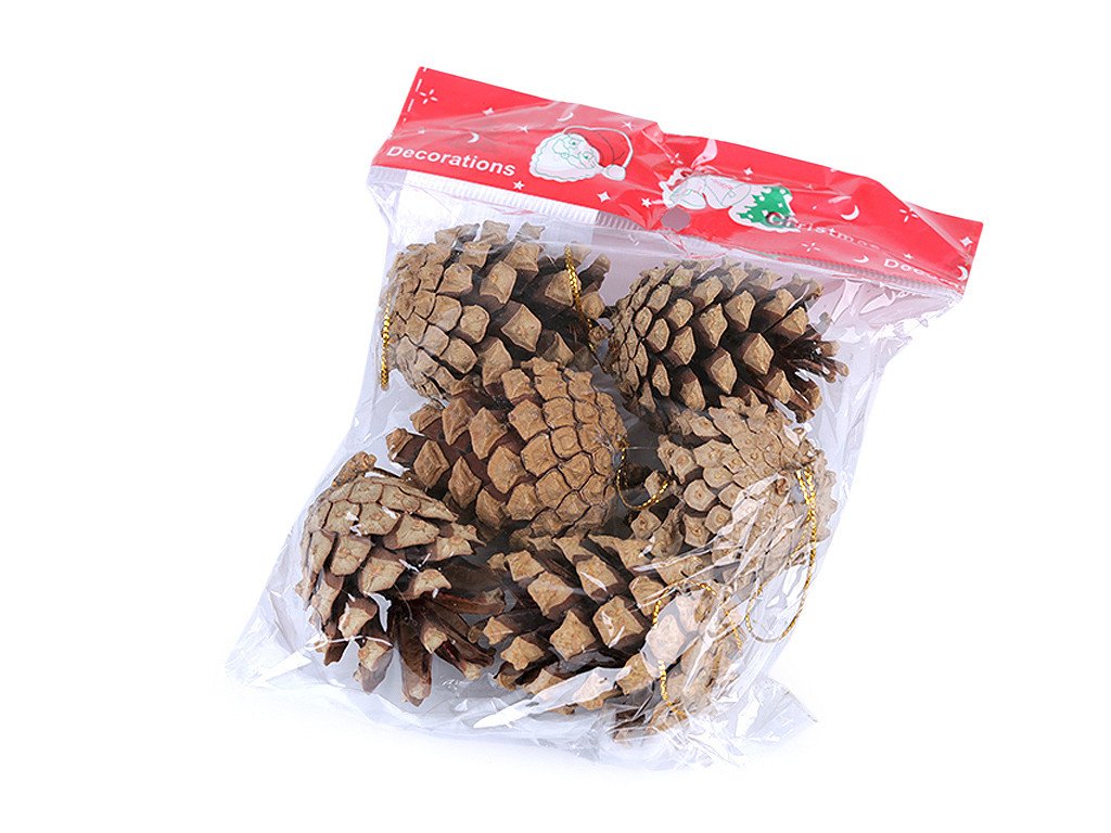 Dekorační šišky můžete pověsit na stromeček, věnce nebo větvičky ve váze.