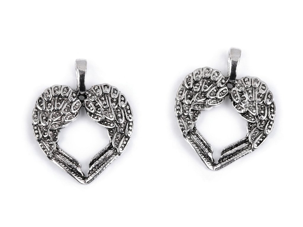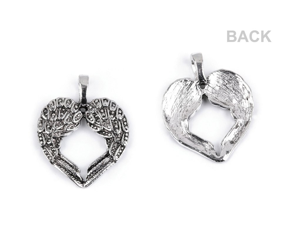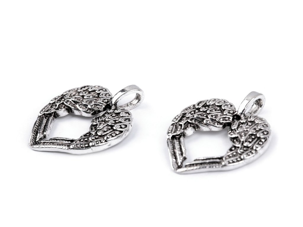 Výprodej - Přívěsek andělská křídla 24x30 mm - platina 2ks