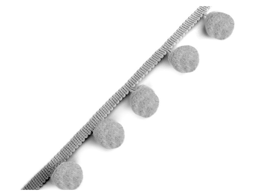 Výprodej - Prýmek šíře cca 38 mm s bambulkami Ø20 mm - šedá - 13,5m