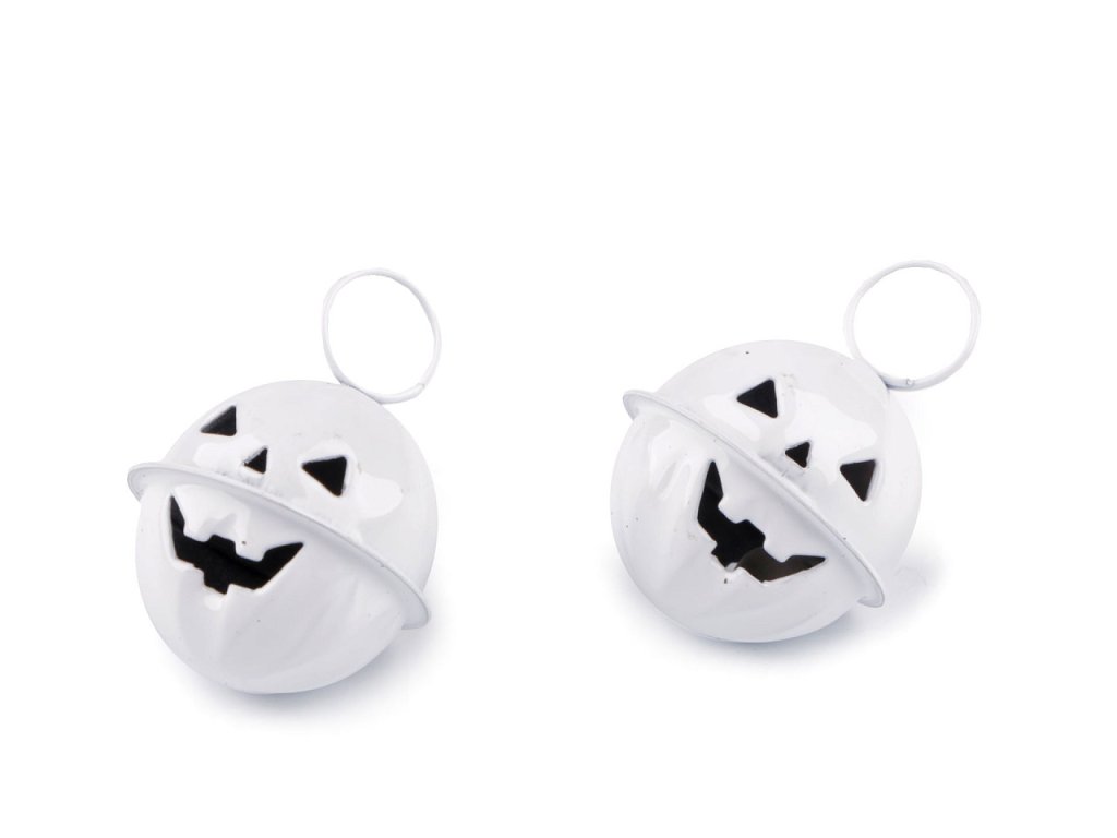 Výprodej - Rolnička dýně halloween Ø24 mm - bílá, 2ks